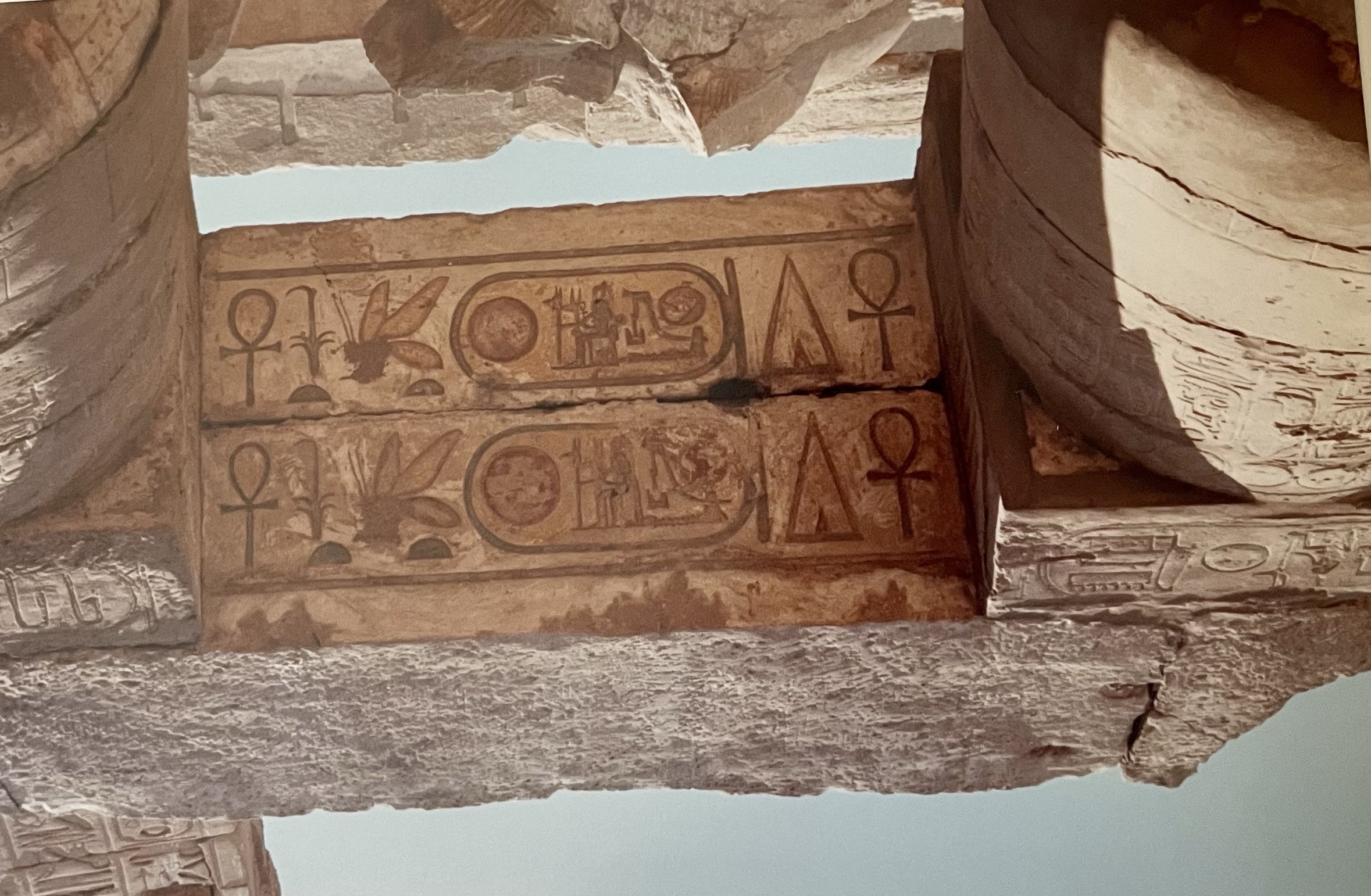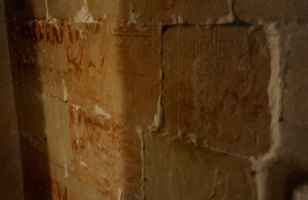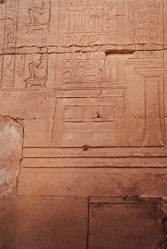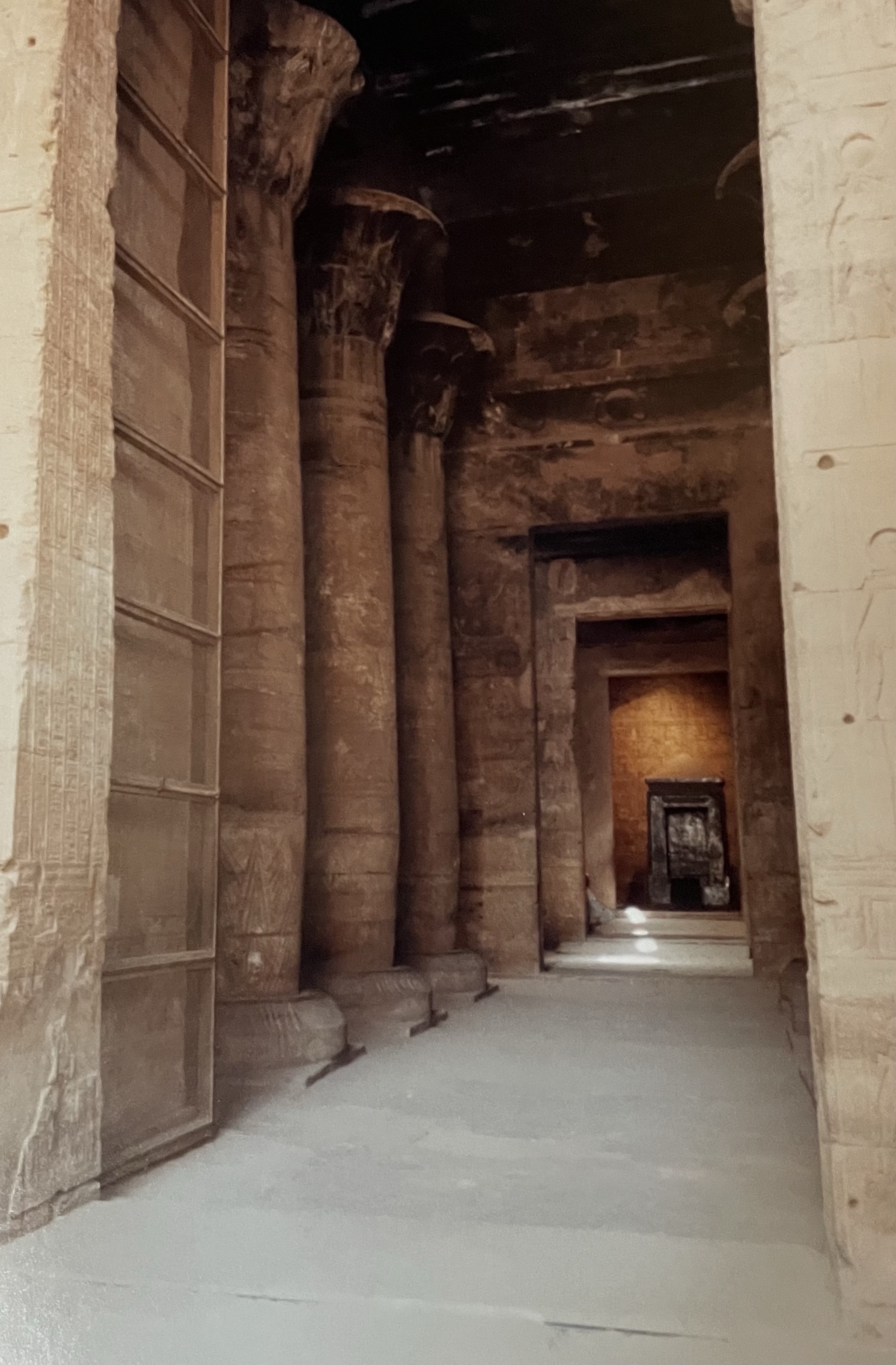 Le Saint des saints avec à l’intérieur un autel, sur lequel on posait la barque du dieu, précédant un naos d’une beauté à couper le souffle. La pierre en est étrange : on dirait qu’une lumière s’en dégage.