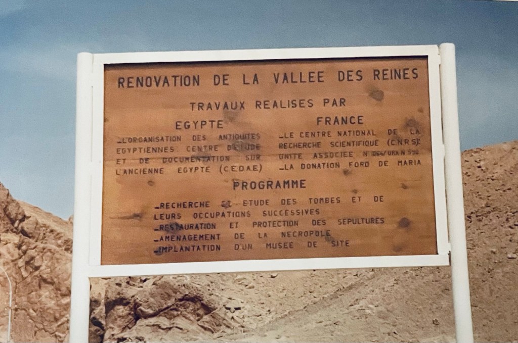VALLÉE DES REINES : nous étions en pleine rénovation de la vallée des reines. J’imagine que cela a bien dû changer depuis. Le tombeau de la Reine Nefertiti (l’épouse de Ramsès II) avait été déjà refermé pour l’éternité après restauration.#