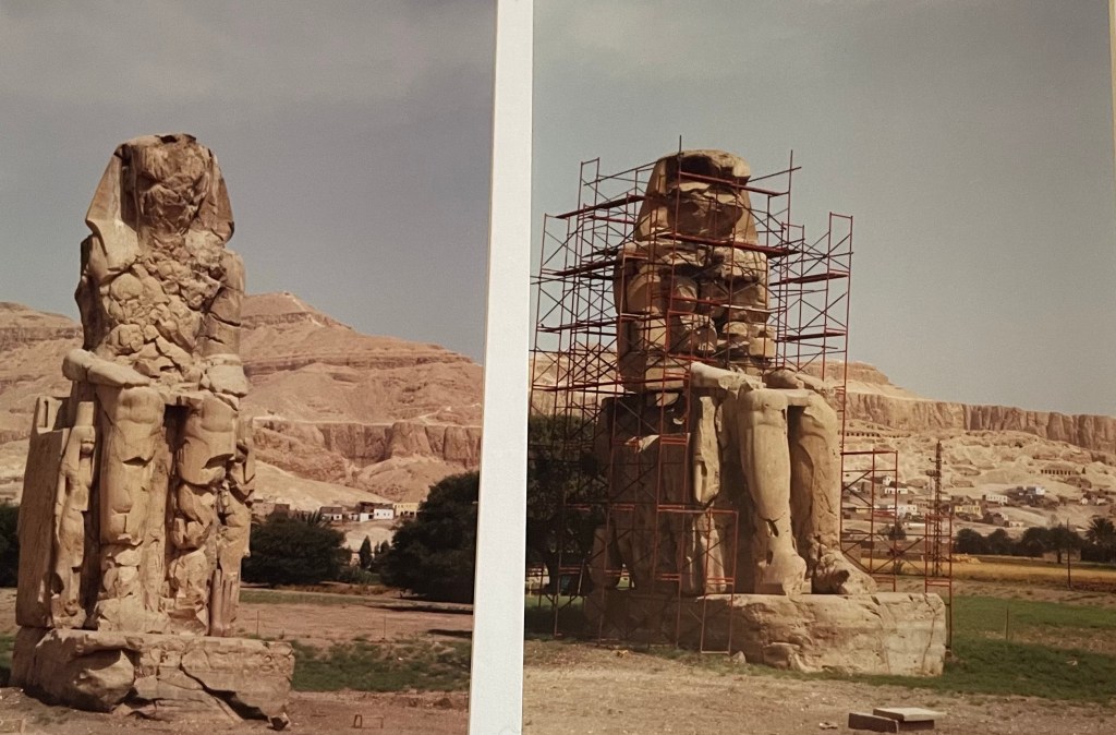 (Seuls vestiges du temple funéraire d’Amenophis III, construit par Amenhotep, fils de Hapou)