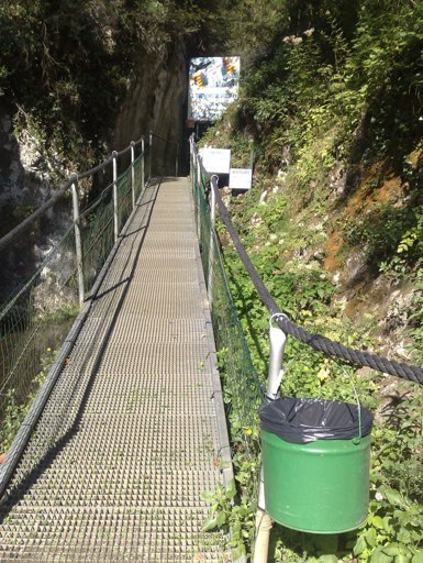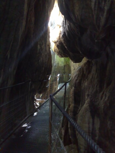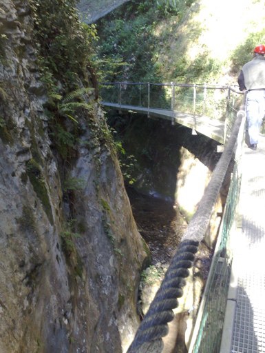 Nous avons eu la chance de visiter cet endroit deux fois par beau temps et sous la pluie, munis de notre casque pour nous garantir des jets de pierres pourtant protégés par un filet.