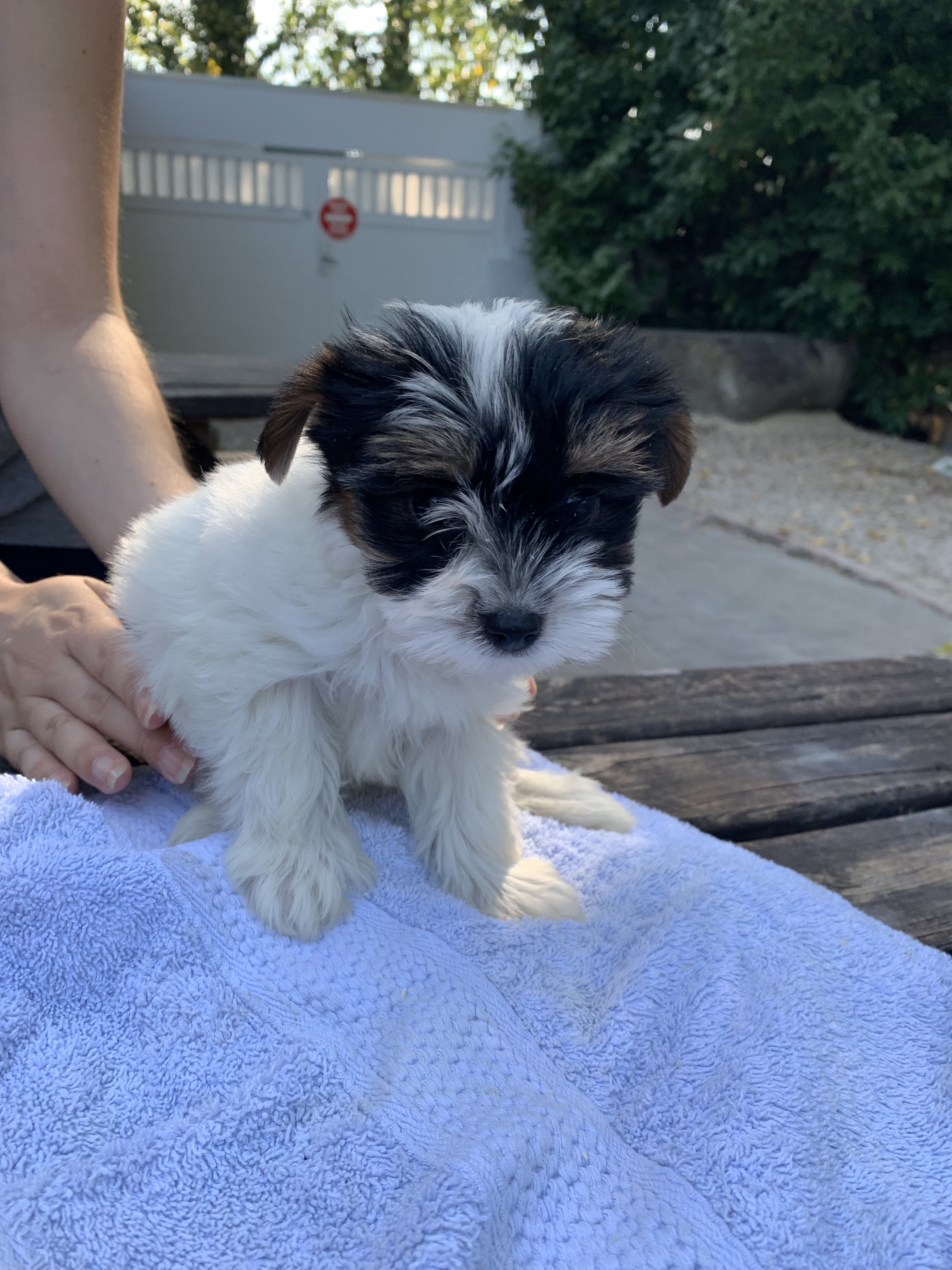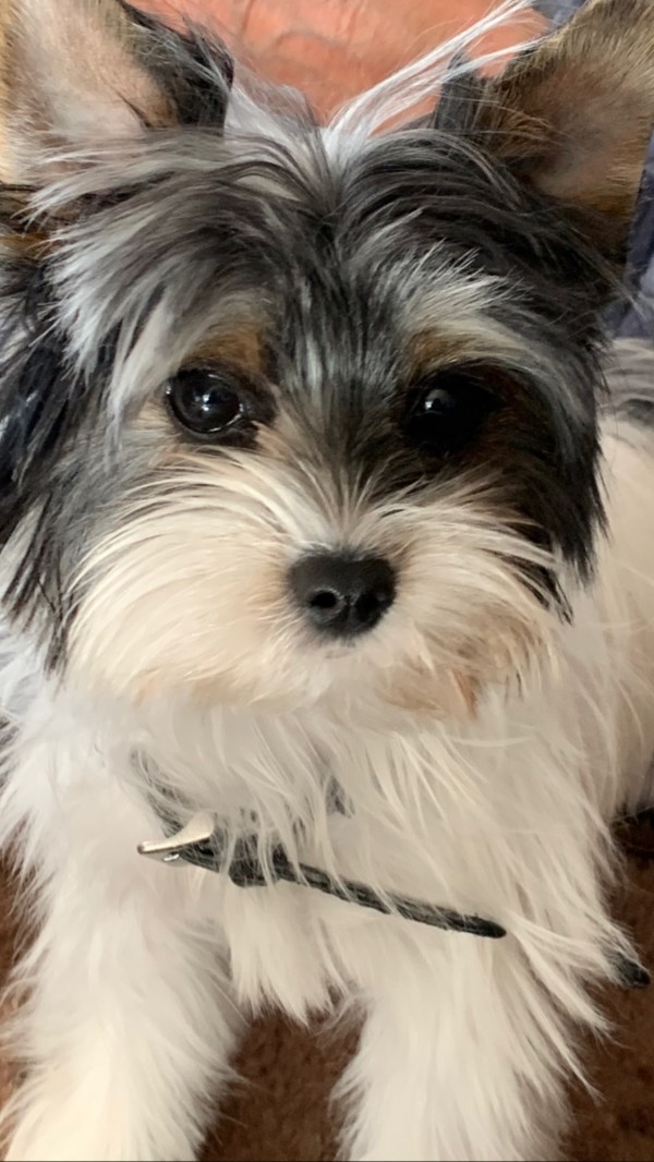 Elle avait alors 13 semainesEt un jour Jean-Louis m’a envoyé un lien vers un centre de chiots avec une photo de Biewer Yorkshire Terriers adorables… Des chiots en tous points semblables à des Yorkshire Terriers à une différence totale près : la couleur de leur robe.