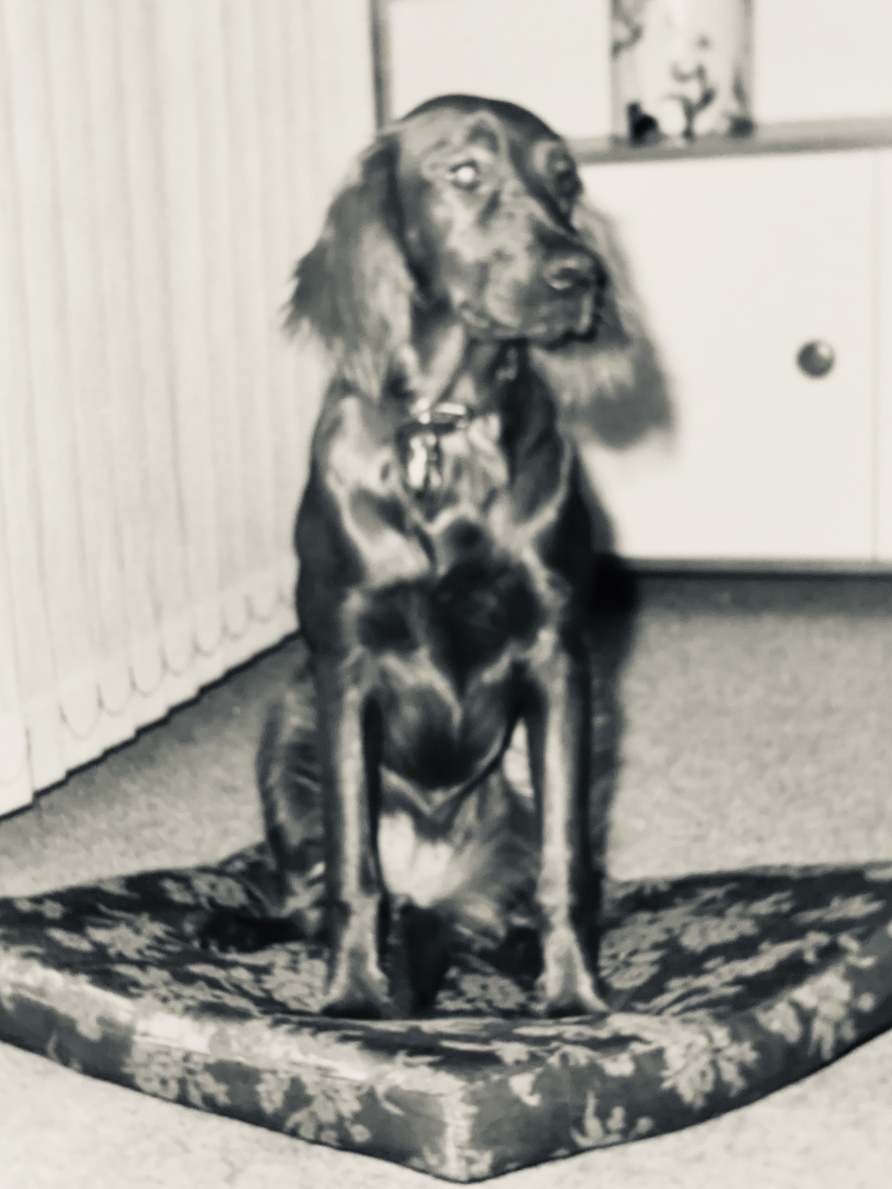 Elle a vite repéré les lieux. Et dès la première nuit est demeurée dans la salle de bains dans son panier. Le lendemain, tôt, je suis allée découvrir mon petit bout qui se tenait gentiment couchée et alors que le sol était inondé par endroits de son petit pipi et maculé de quelques crottes.