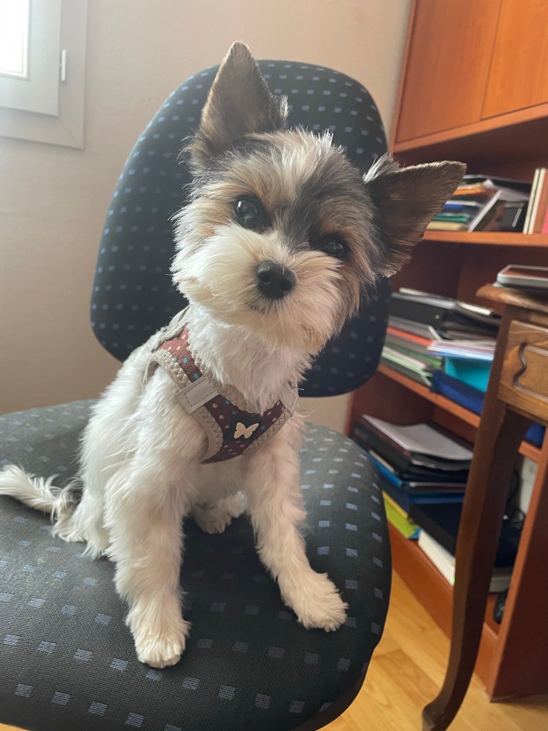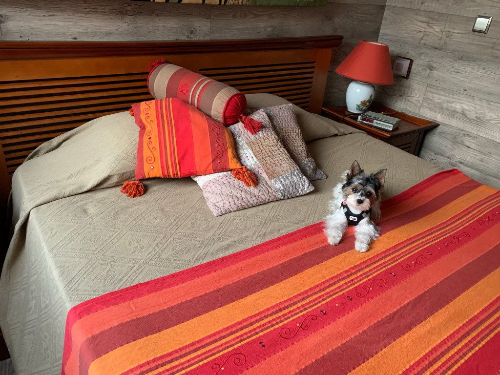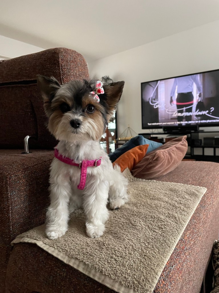 Dans l’auto elle reste sur mes genoux sans bouger et là aussi c’est un sacré progrès par rapport à mes deux Yorkies précédents qui détestaient ce type de conduite.