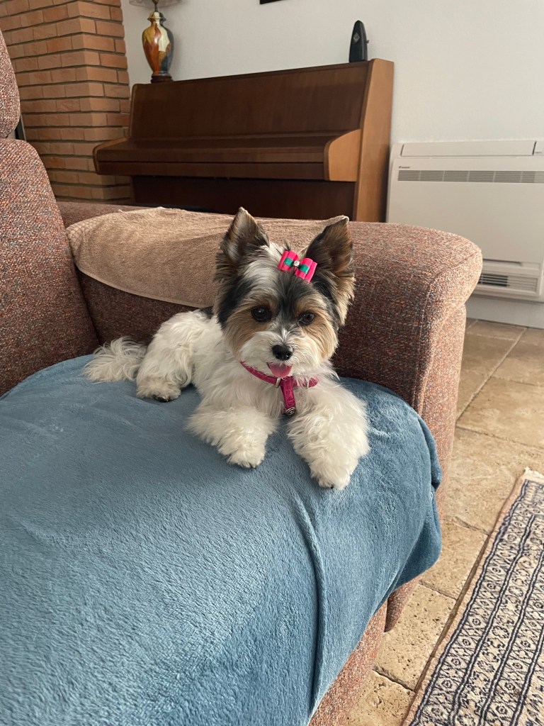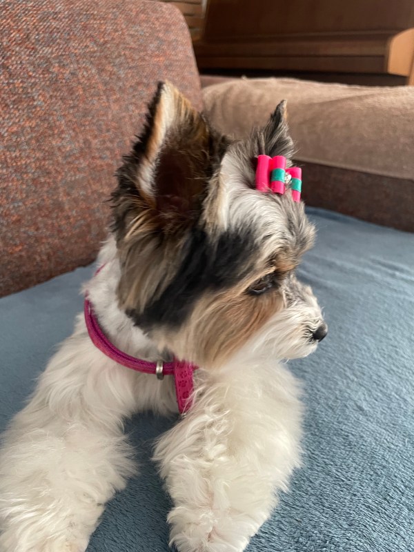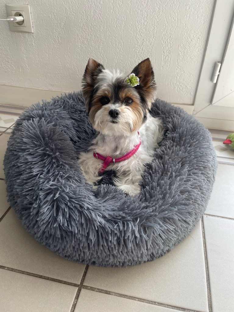 J’imagine que ce n’est qu’une question de temps pour elle. J’ai cru comprendre que les Biewer Yorkshire Terriers étaient relativement longs à être propres. Pourtant les expériences que j’ai eu de mes deux York précédents étaient très concluantes car je n’ai aucun souvenir d’avoir eu des difficultés de ce côté-là.