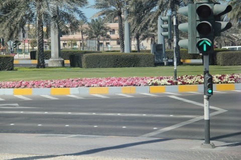 Nous devions faire en avion le voyage d’Abou Dabi. Je ne me rappelle plus vraiment la raison mais elle était en rapport avec des problèmes sécuritaires. Pour ces 140 km en 1h 30 environ, c’est donc en bus que nous nous nous sommes déplacés, mais finalement cela nous a permis de découvrir le désert de Rub al-Khali. Ce dont je me souviens c’est que quelques km avant Abou Dabi, l’autoroute avait de part et d’autre des voies un parterre de fleurs dont on nous a dit qu’elles étaient changées tous les trois ou quatre jours.