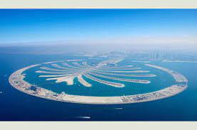Une excursion en avion que nous n’avons pas faite parce que trop onéreuse permettait d’aller admirer par avion Palm Jumereih, cet archipel artificiel (comme la piste de ski en pleine ville) baigné par le golfe persique et qui a la forme d’un palmier constitué d’un tronc et de seize branches … dont voici une image empruntée à Internet.