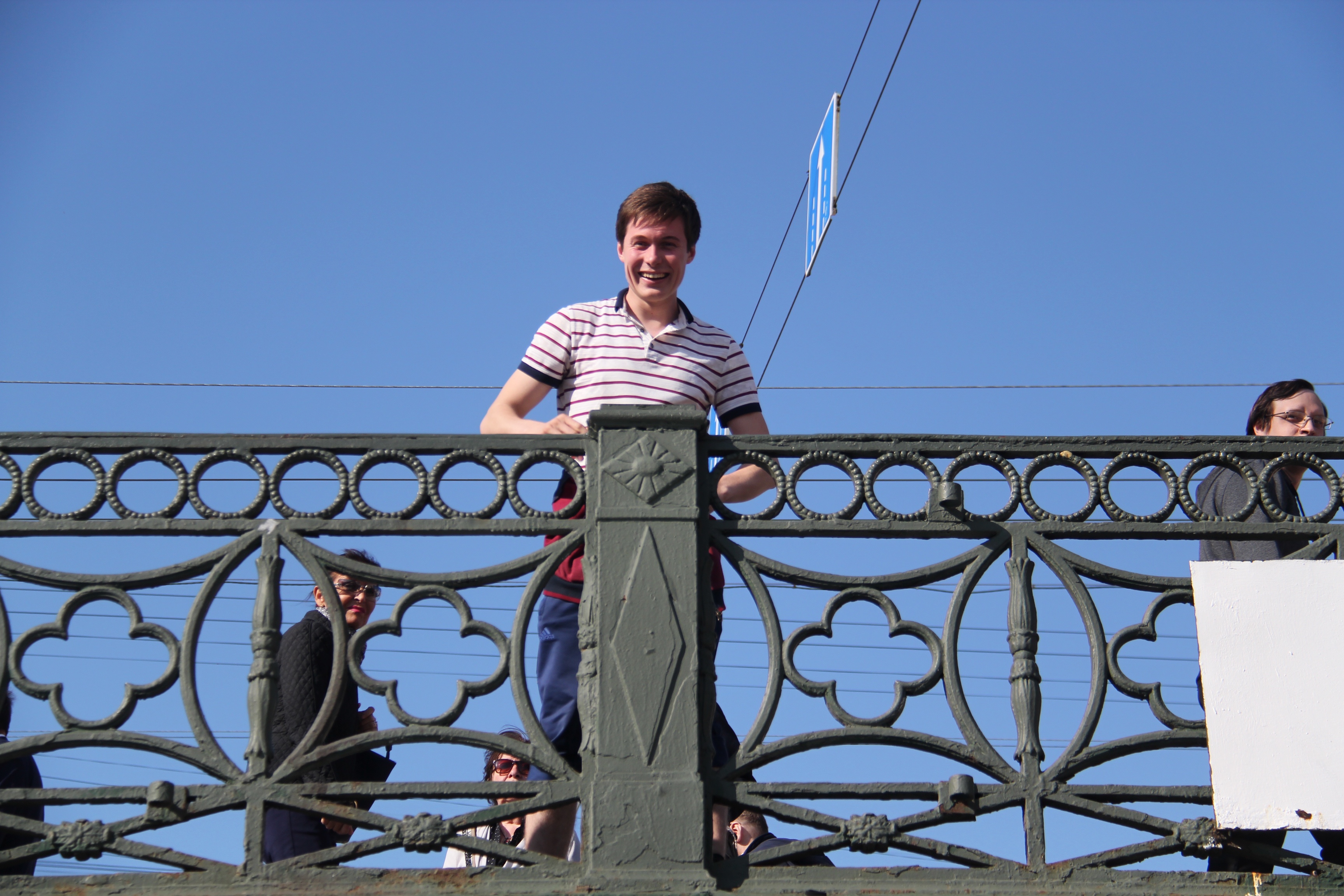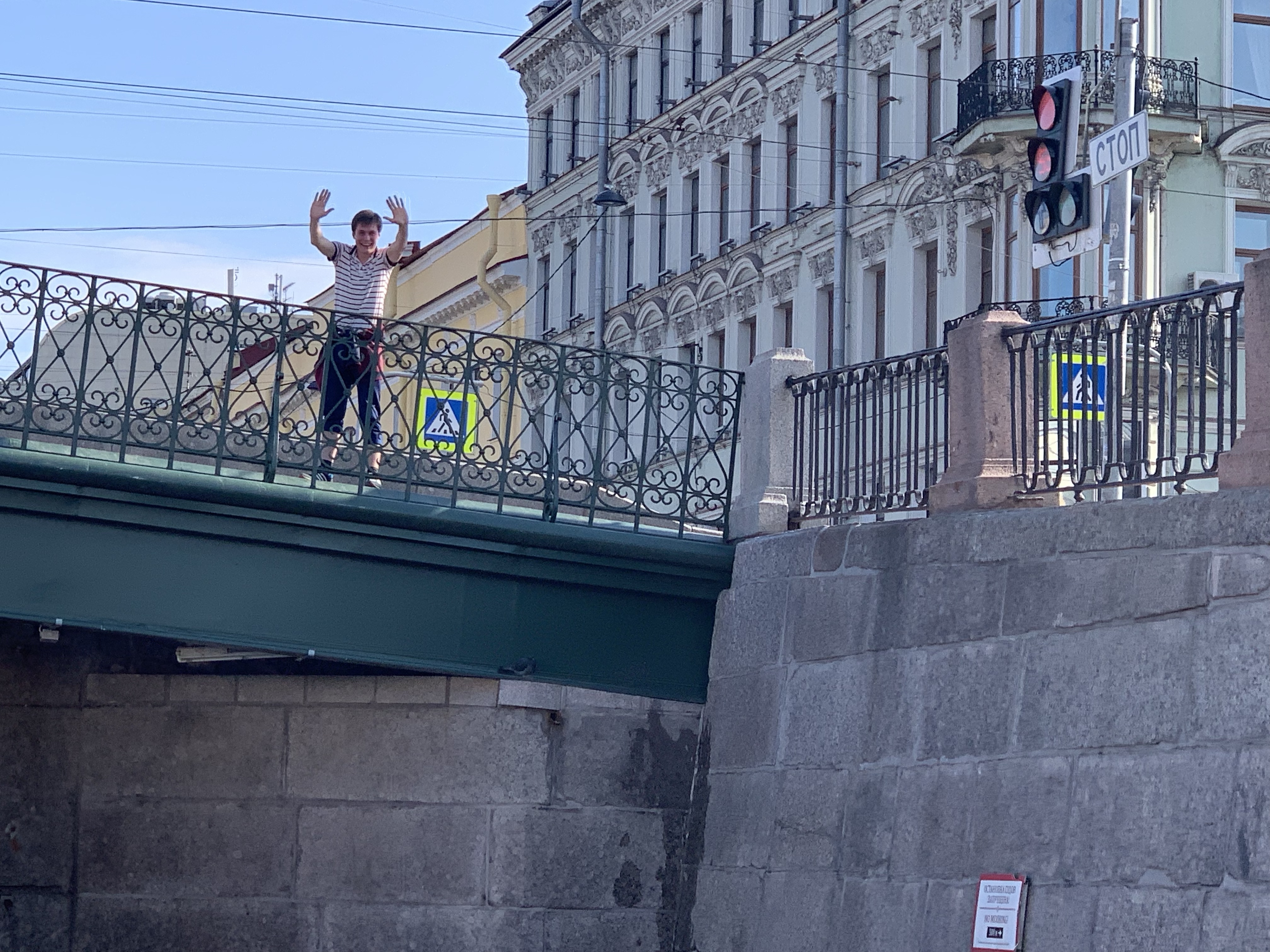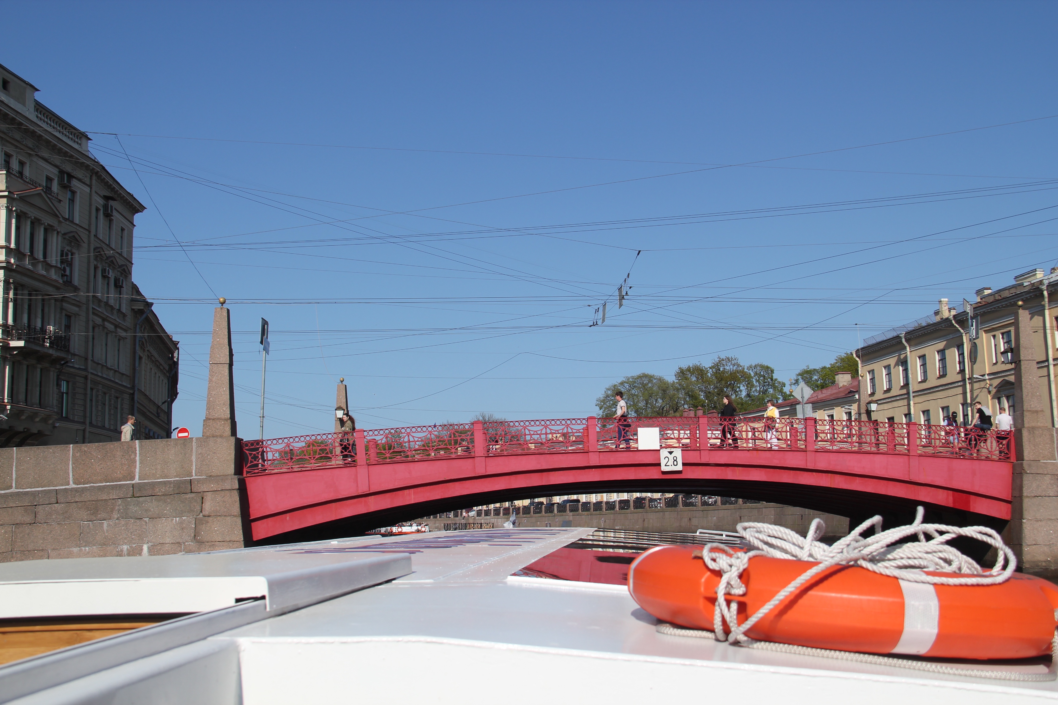 Après le déjeuner au restaurant Moscou, nous avons pris le bateau pour sillonner les canaux de la ville et avoir depuis la Neva une autre perspective des bâtiments la côtoyant. Nous avons pris beaucoup de plaisir à voir un jeune nous faire des signes depuis les ponts pour nous faire comprendre que nous le retrouverions au pont suivant et à notre grand amusement de pont en pont nous l’avons retrouvé. En le récompensant nous avons compris qu’étudiant, il se faisait ainsi un peu d’argent de poche.
