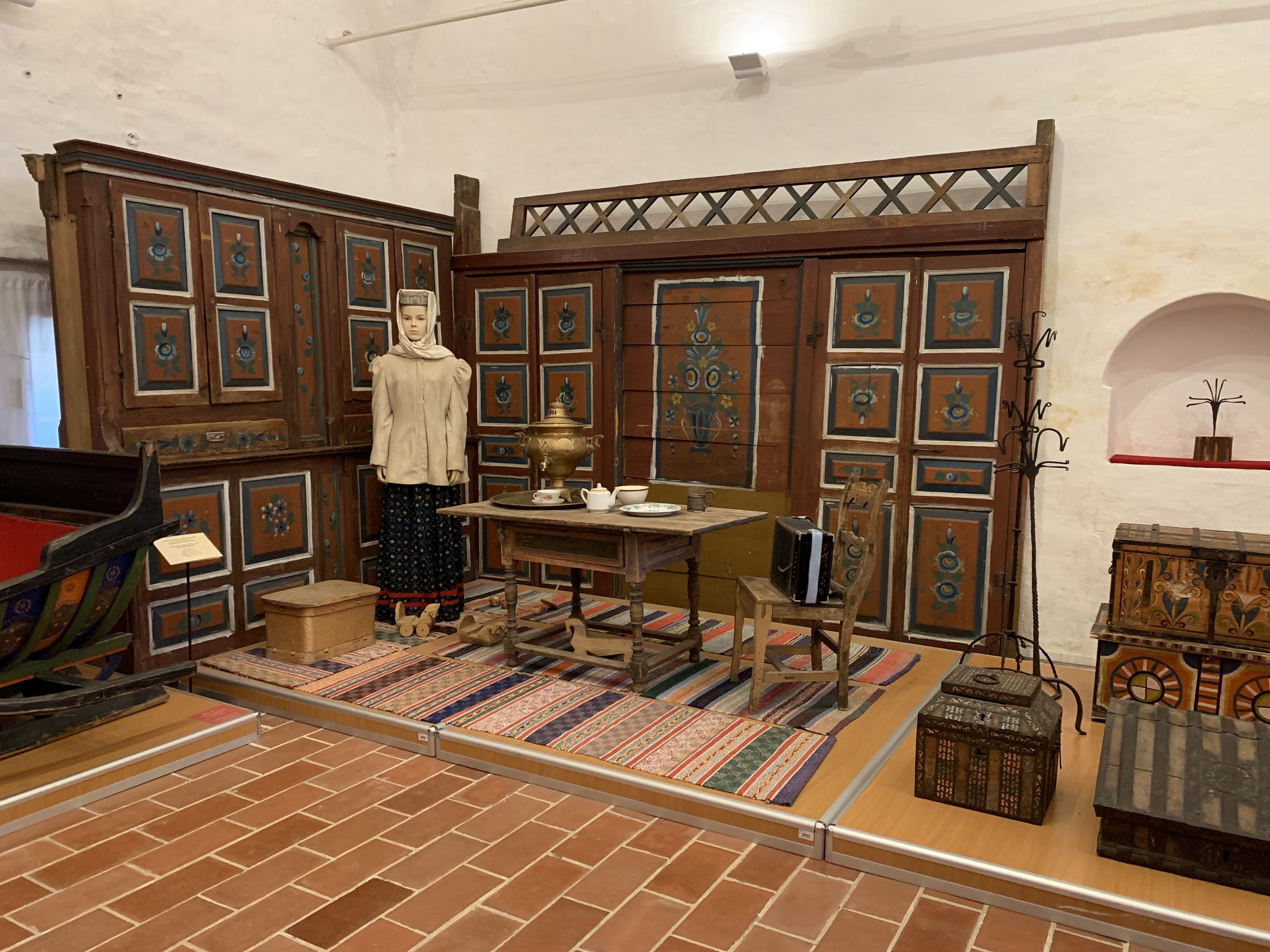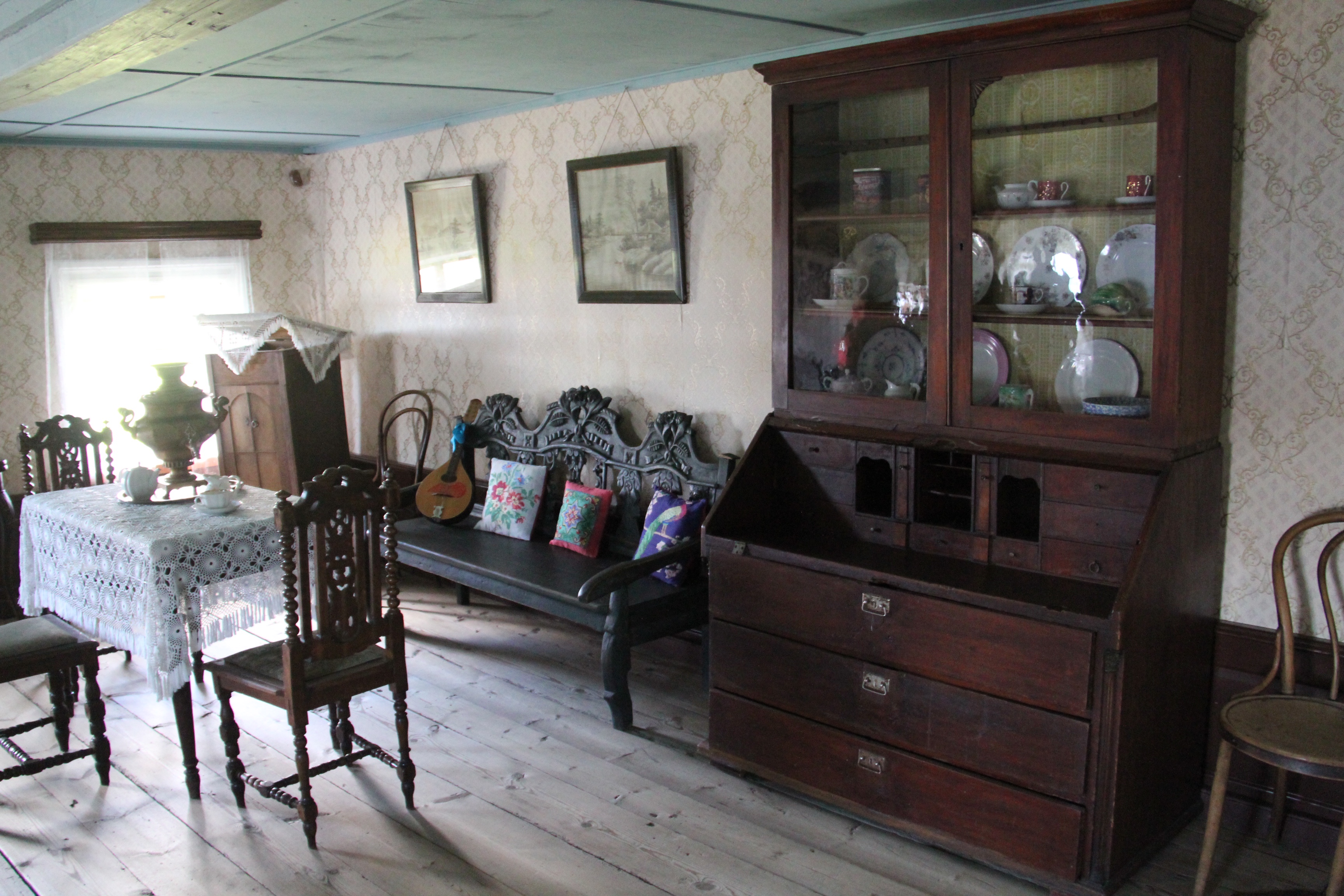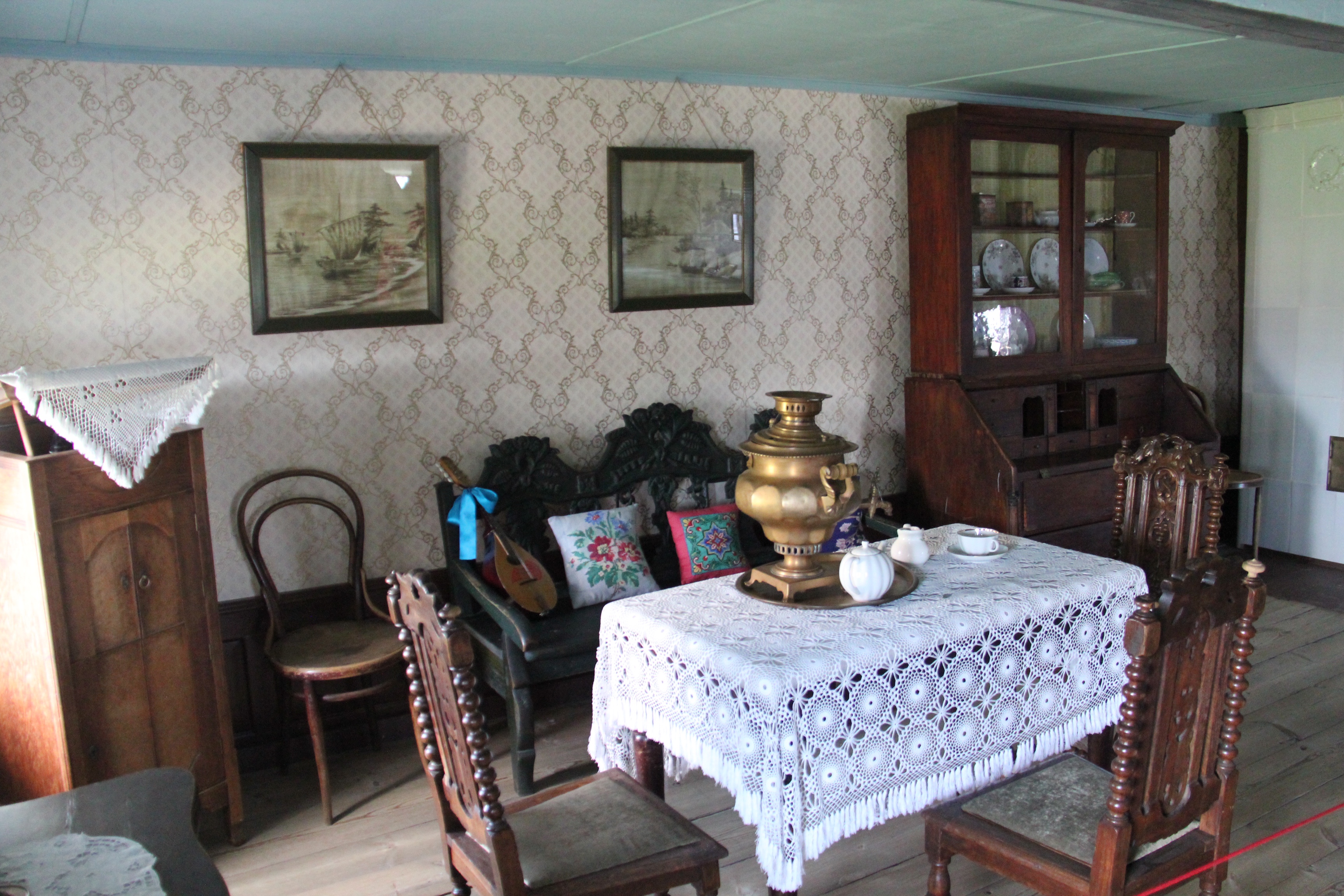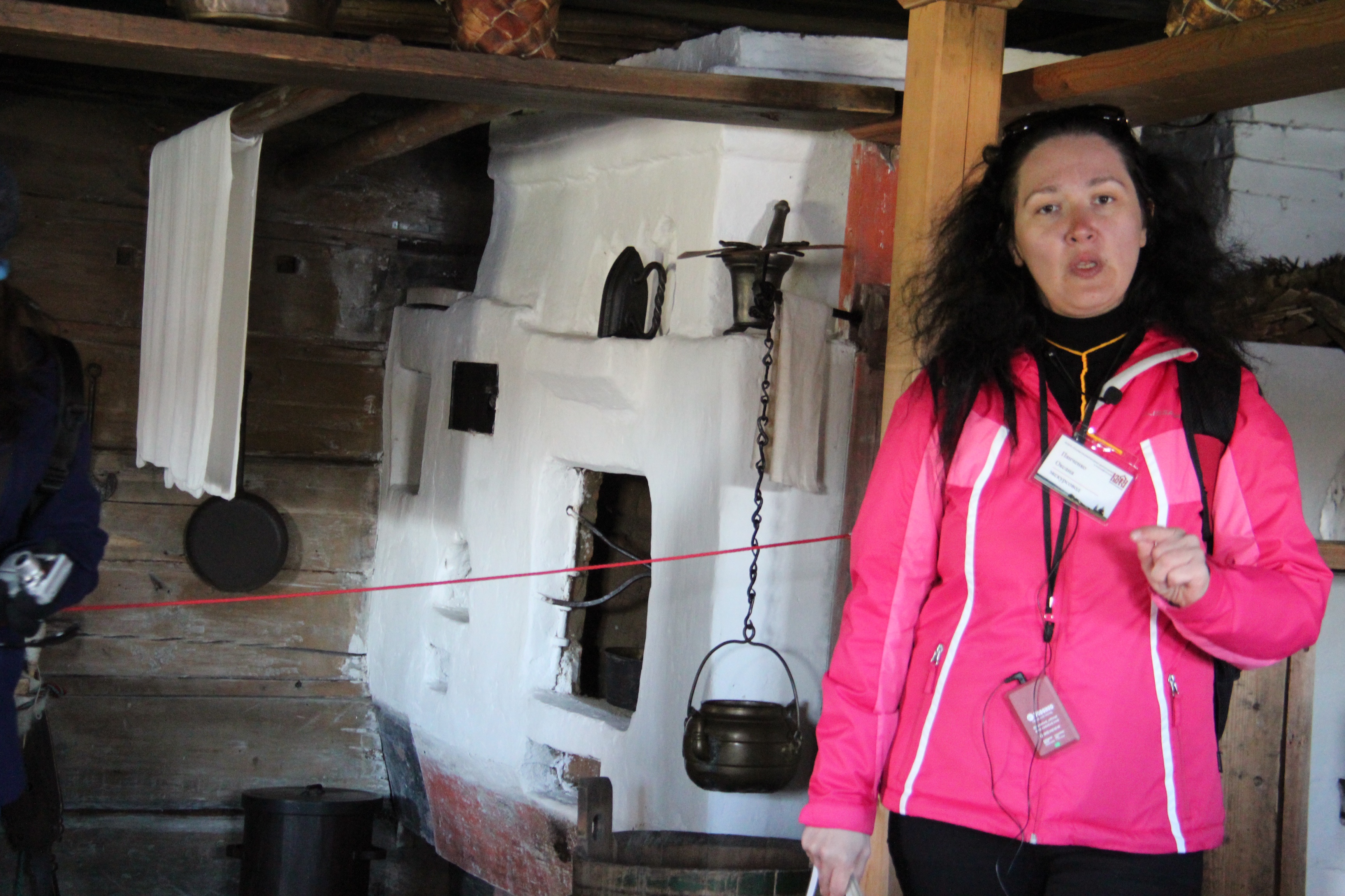 Après une matinée passée à bord entre gym matinale et réunion sur la vie à bord et la description des escales nous voici à MANDROGUI où MANDROGA, village en bois construit par des enthousiastes amoureux de la vie paysanne et où nous avions prévu de prendre un déjeuner typique. Dès l’accostage on est charmé par ces maisons en bois, constructions assez récentes rappelant la vie d’autrefois en Russie. Sur la rive déserte du Svir, à la place d’un village disparu pendant la guerre, ils ont construit ces isbas et un débarcadère. Les maisons sont richement décorées, notamment le restaurant où nous prenons notre repas dont l’intérieur évoque les anciens terems russes, ces ensembles de pièces d’habitation situées à l’étage supérieur, repas délicieux arrosé de vodka (modérément) et de thé préparé à la russe et accompagné d’un musicien et de ses chanteuses.