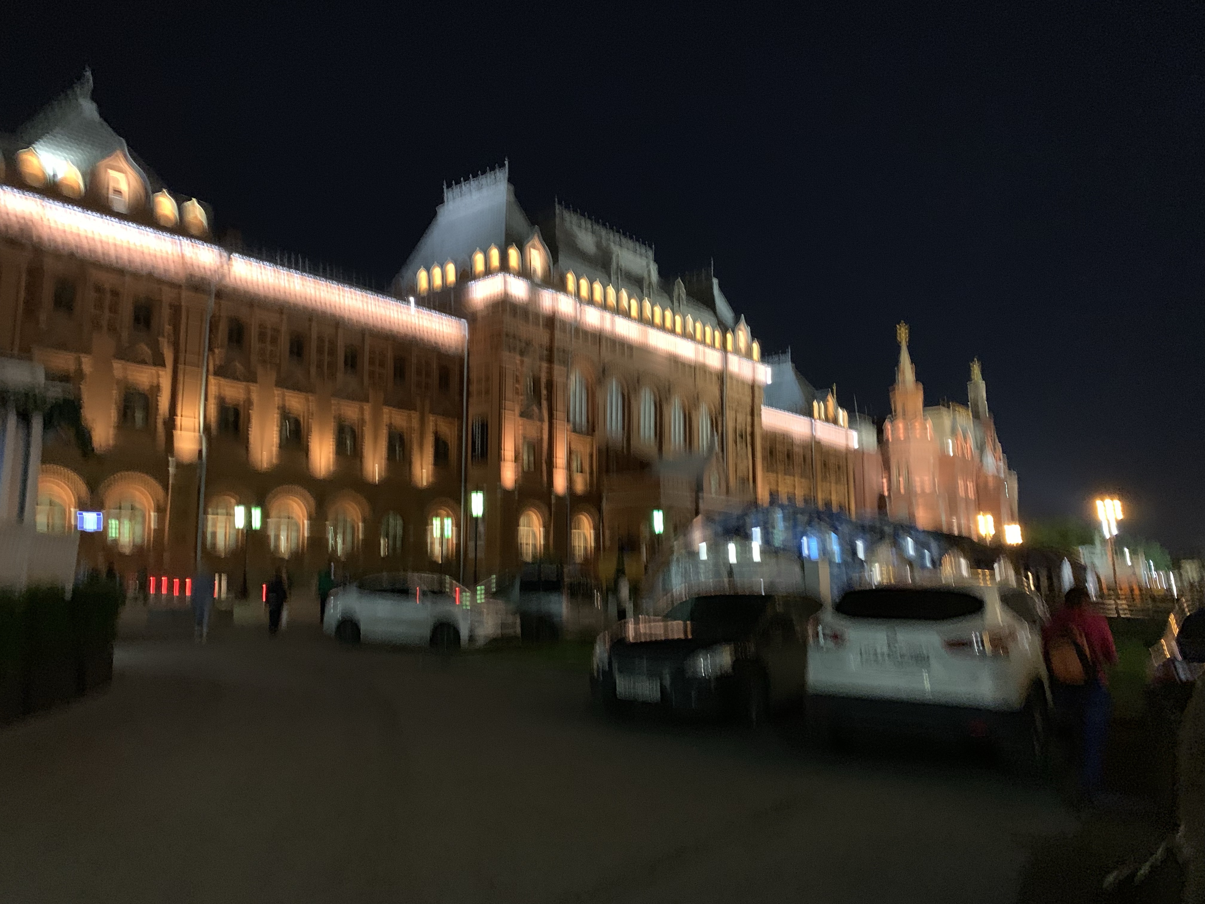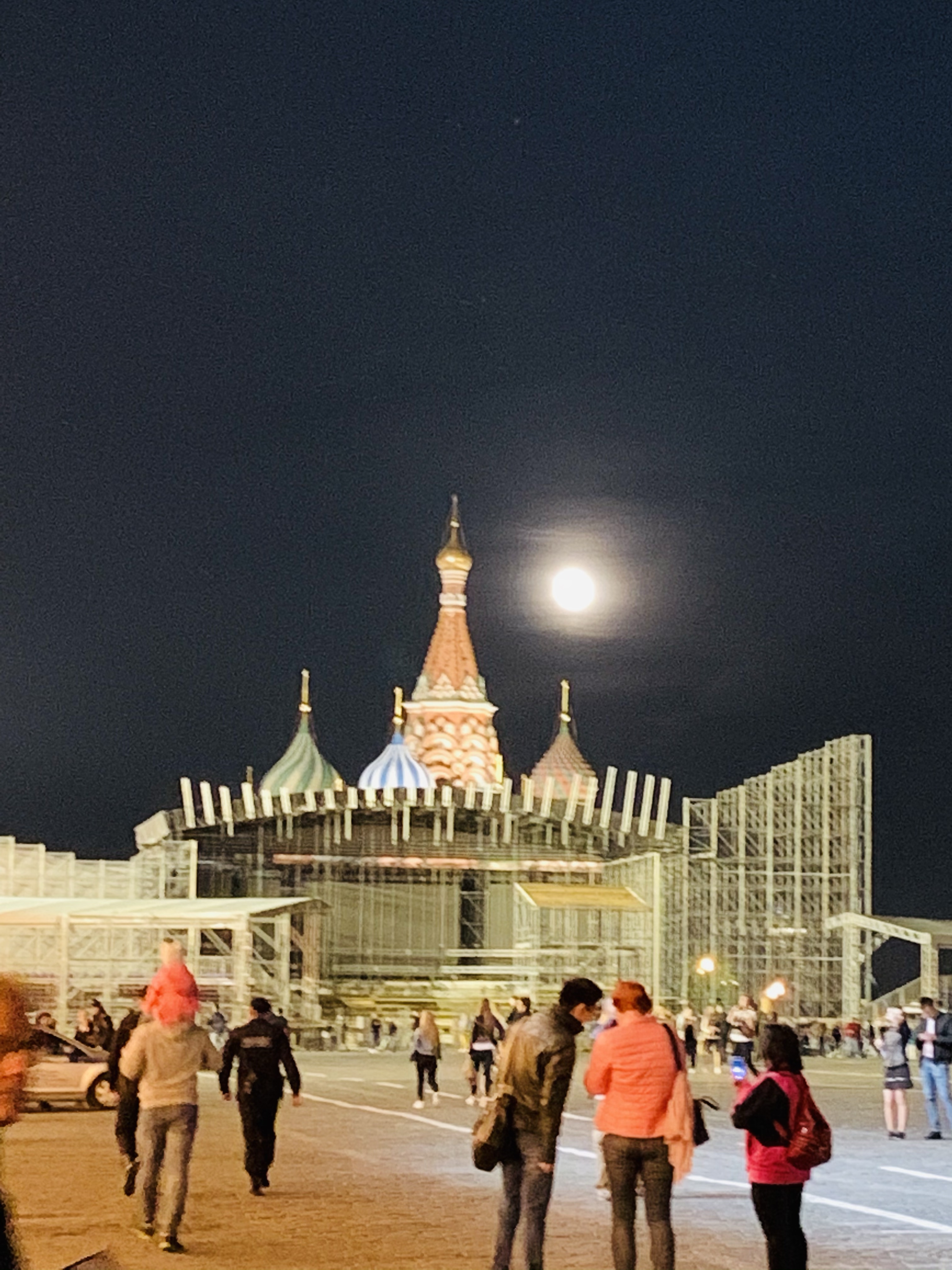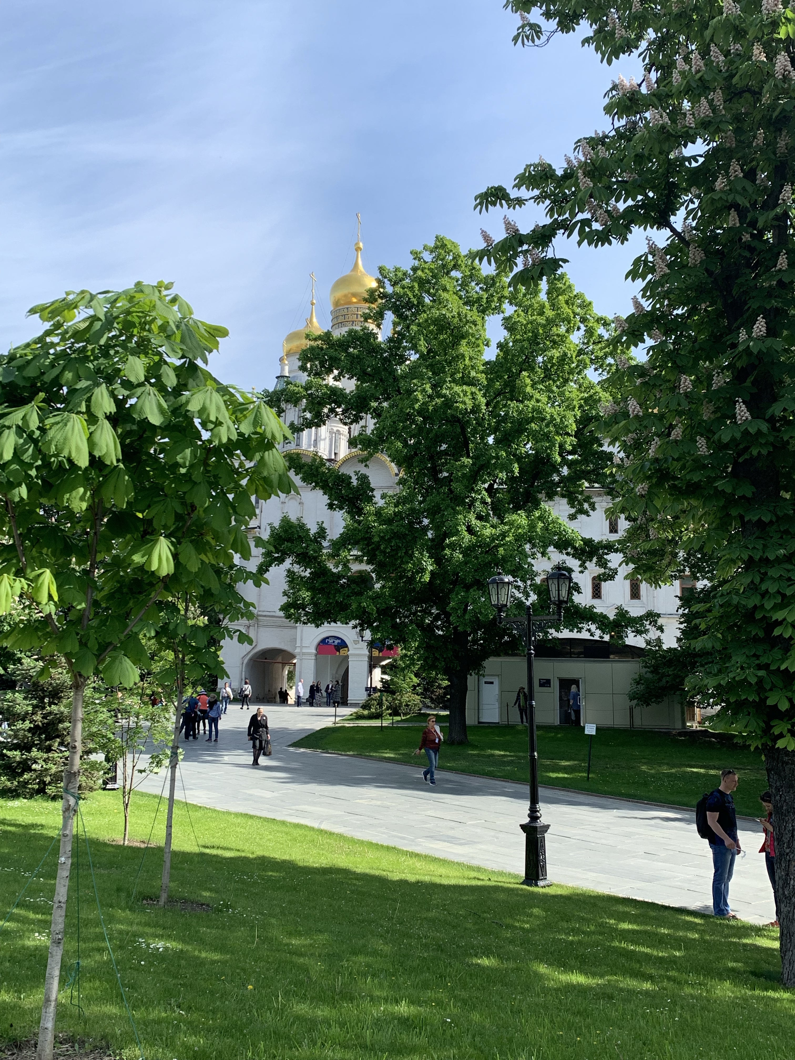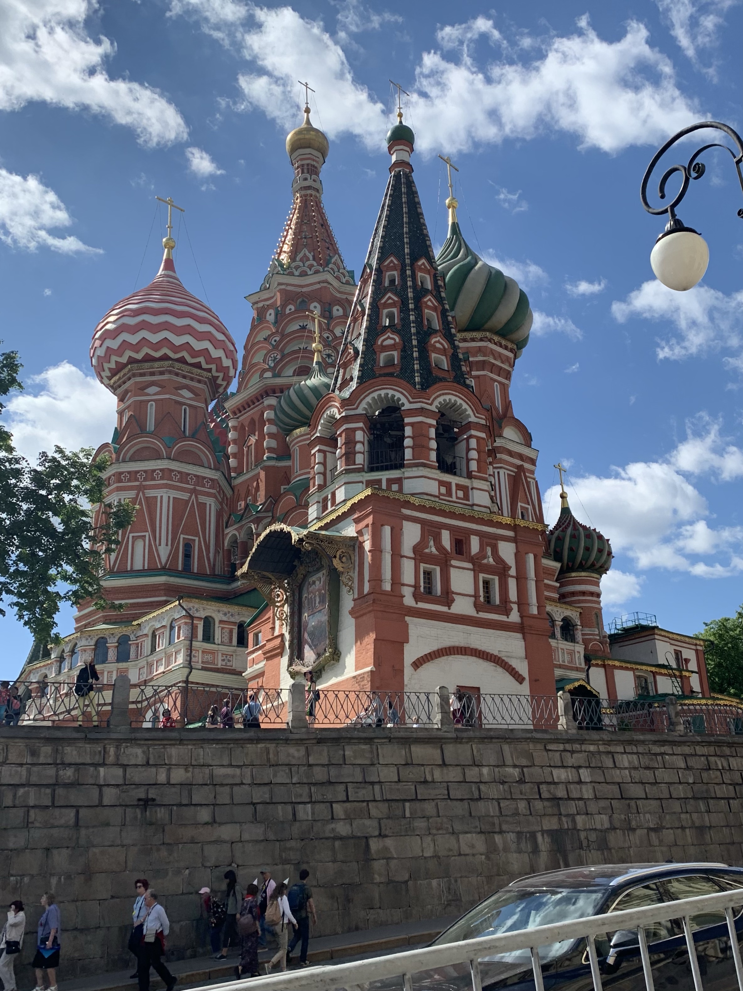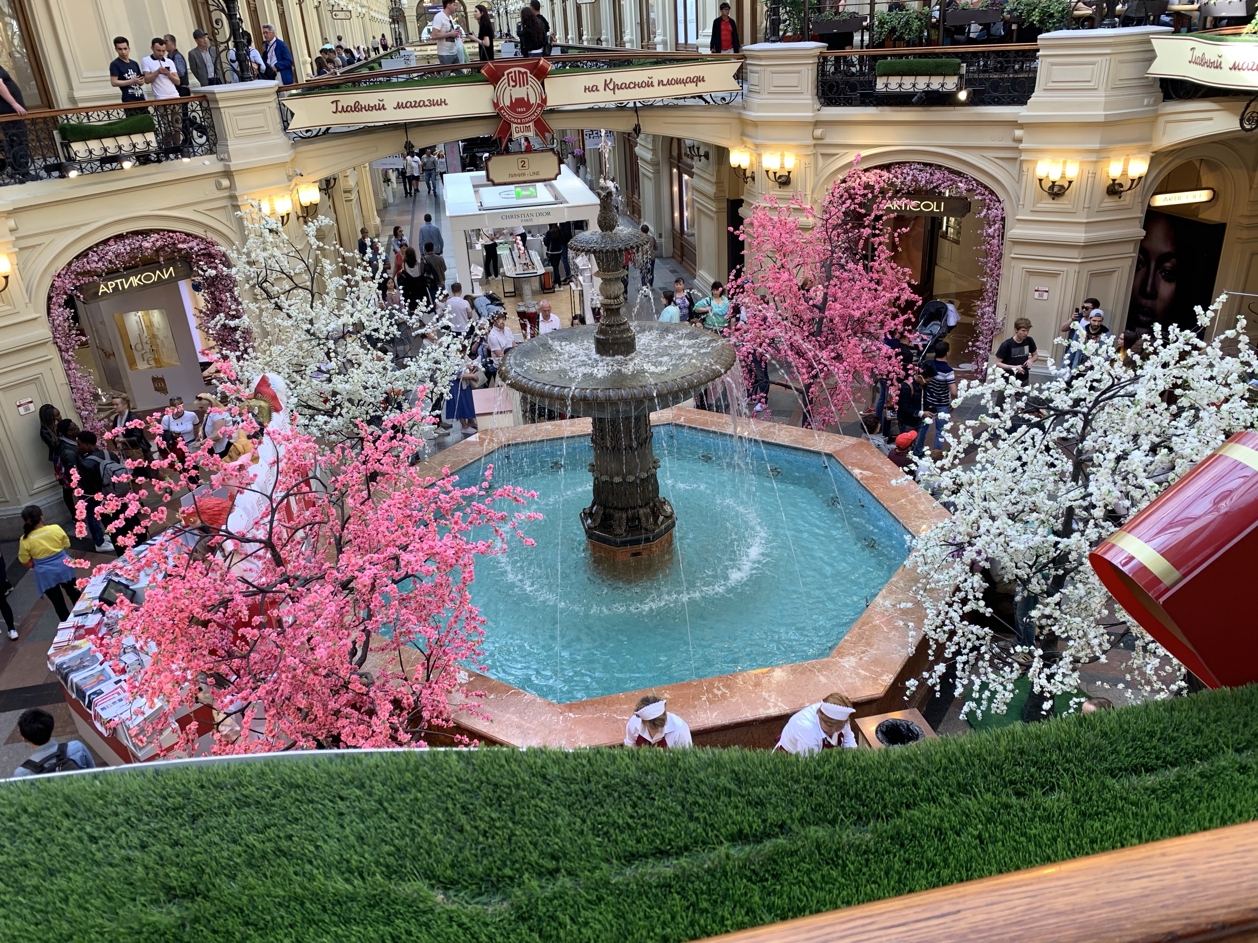Je suis étonnée par les dimensions de la fameuse Place Rouge célébrée par Gilbert Bécaud avec sa Nathalie : je m’attendais à ce qu’elles fussent phénoménales comme tendent à le démontrer les vidéos faites à l’occasion du 1er mai par exemple. En réalité elle est à taille humaine et on en fait assez rapidement le tour. Imposant en revanche est le magnifique GUM, le très célèbre et très beau grand magasin. En raison de la saison touristique en son début, beaucoup de touristes y circulent sans pour autant causer la moindre gêne.