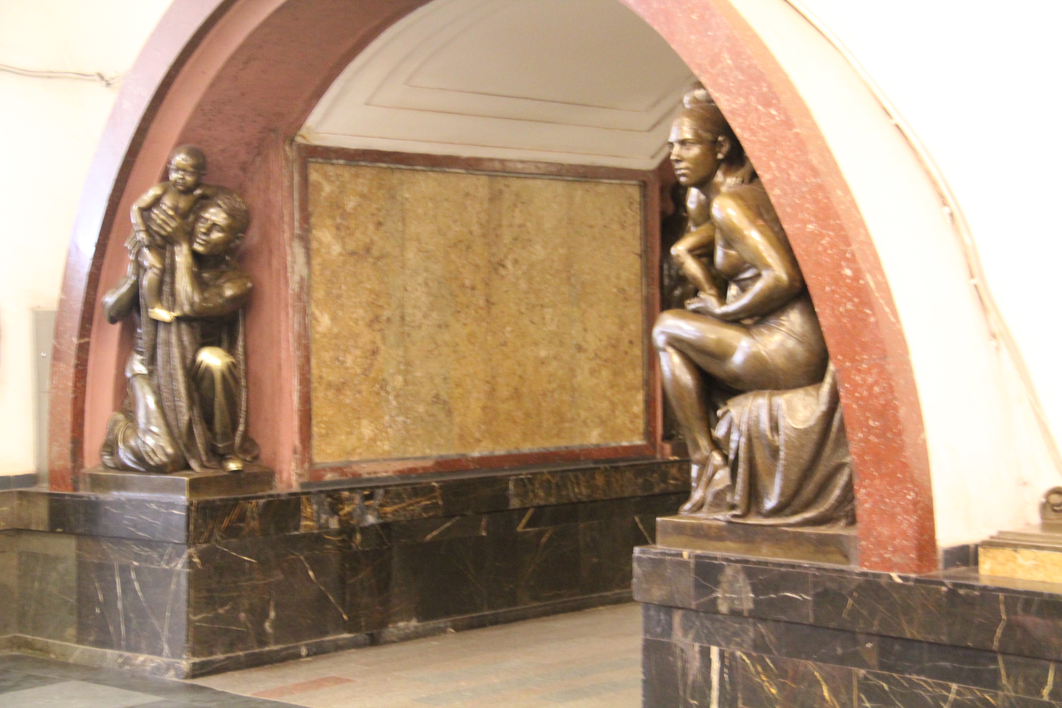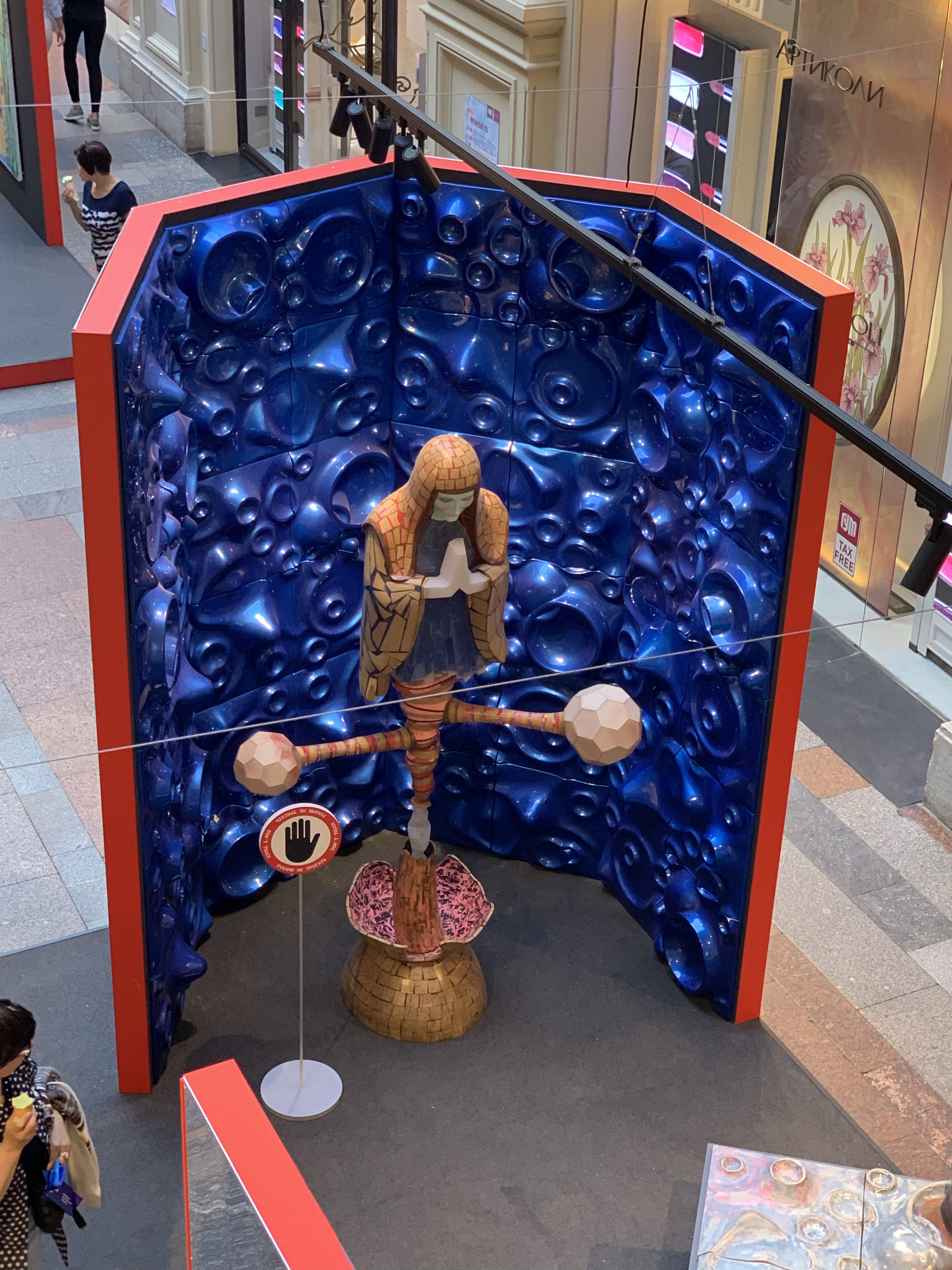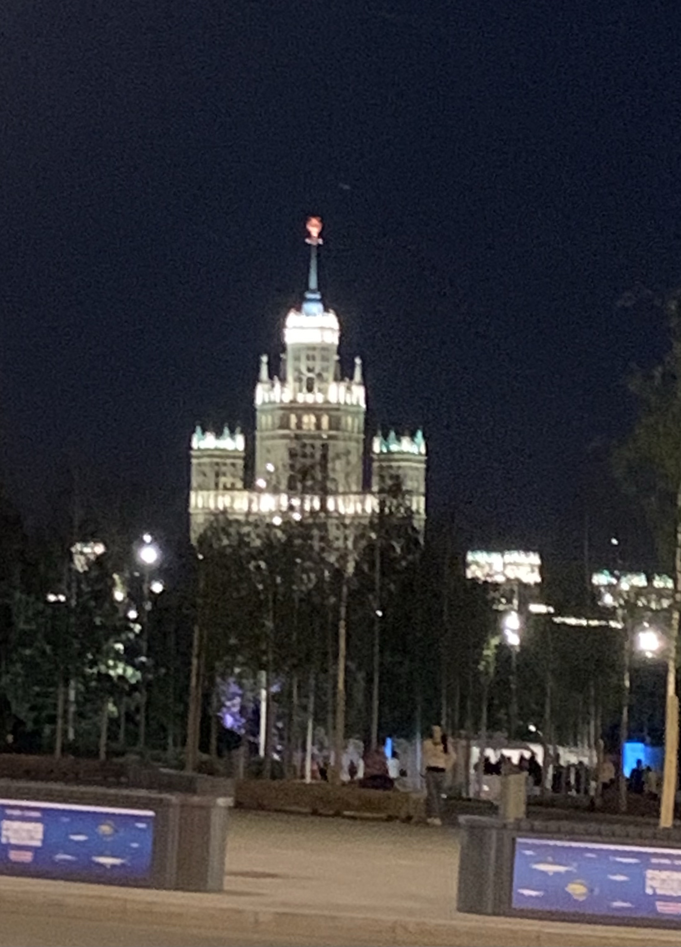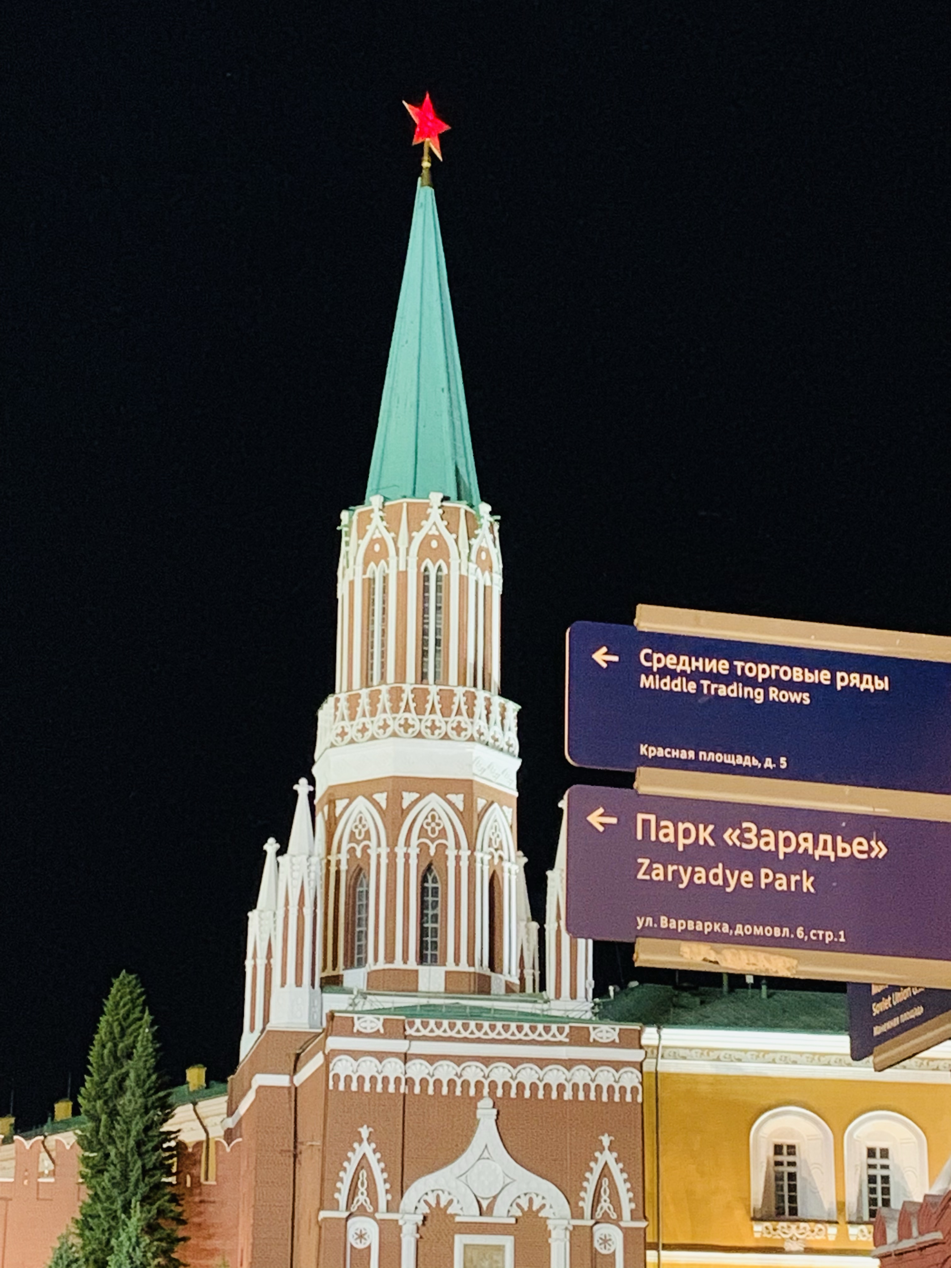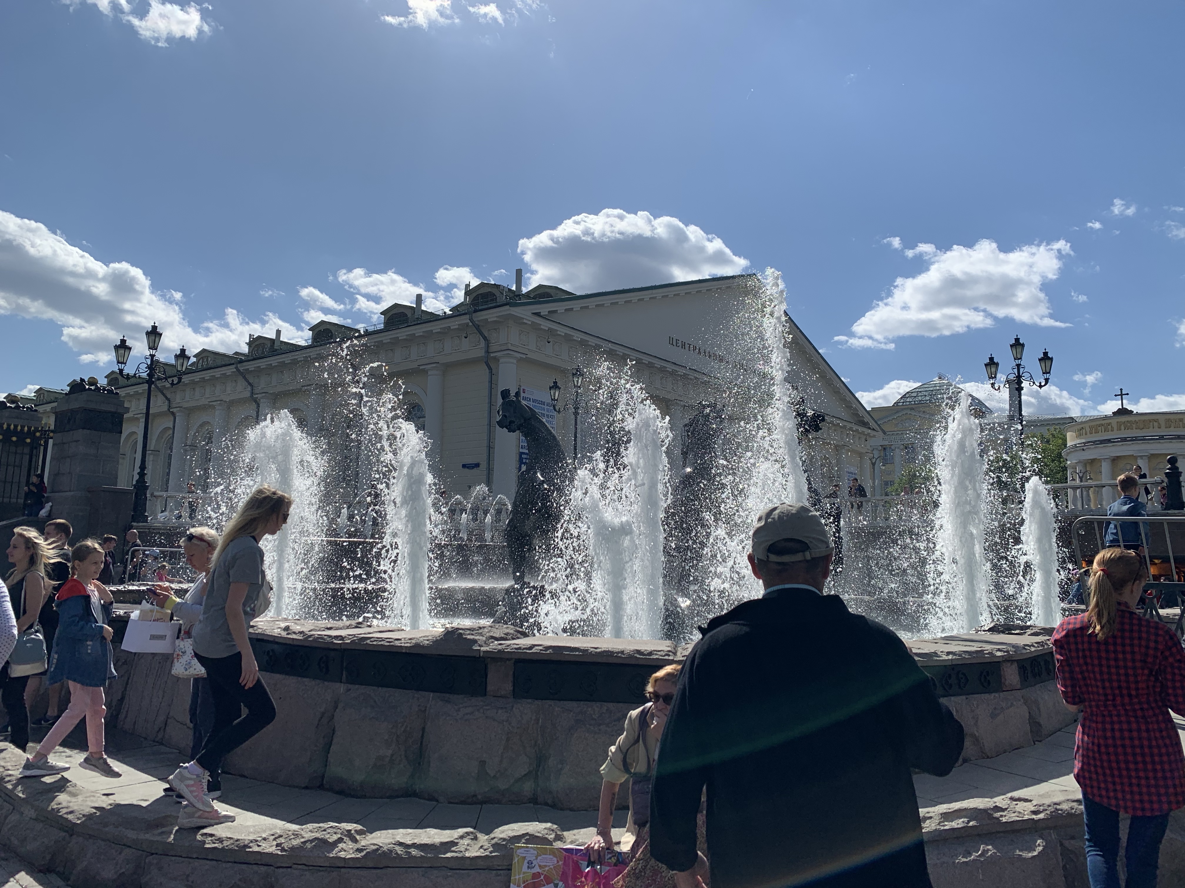 Je suis étonnée par les dimensions de la fameuse Place Rouge célébrée par Gilbert Bécaud avec sa Nathalie : je m’attendais à ce qu’elles fussent phénoménales comme tendent à le démontrer les vidéos faites à l’occasion du 1er mai par exemple. En réalité elle est à taille humaine et on en fait assez rapidement le tour. Imposant en revanche est le magnifique GUM, le très célèbre et très beau grand magasin. En raison de la saison touristique en son début, beaucoup de touristes y circulent sans pour autant causer la moindre gêne.