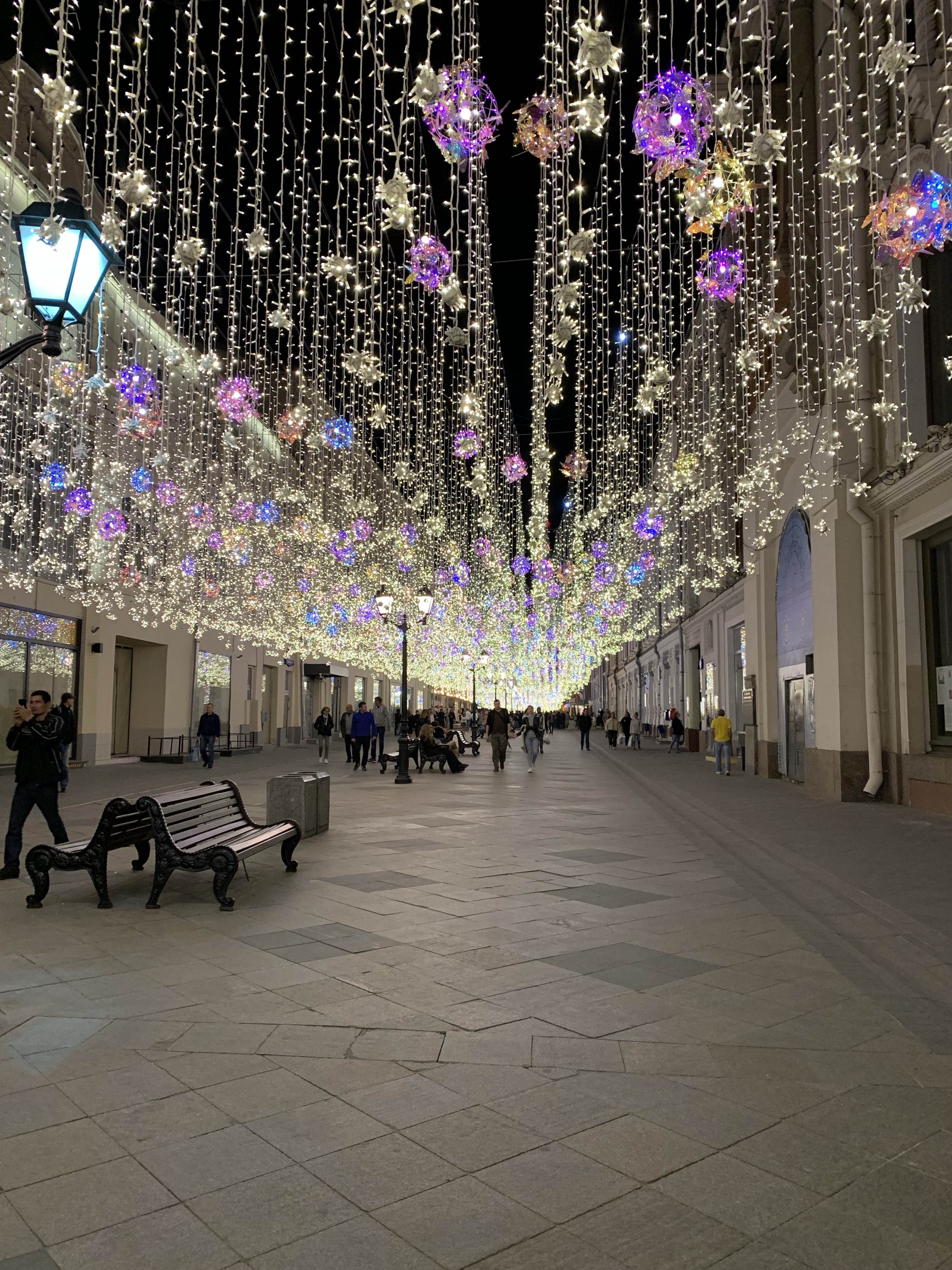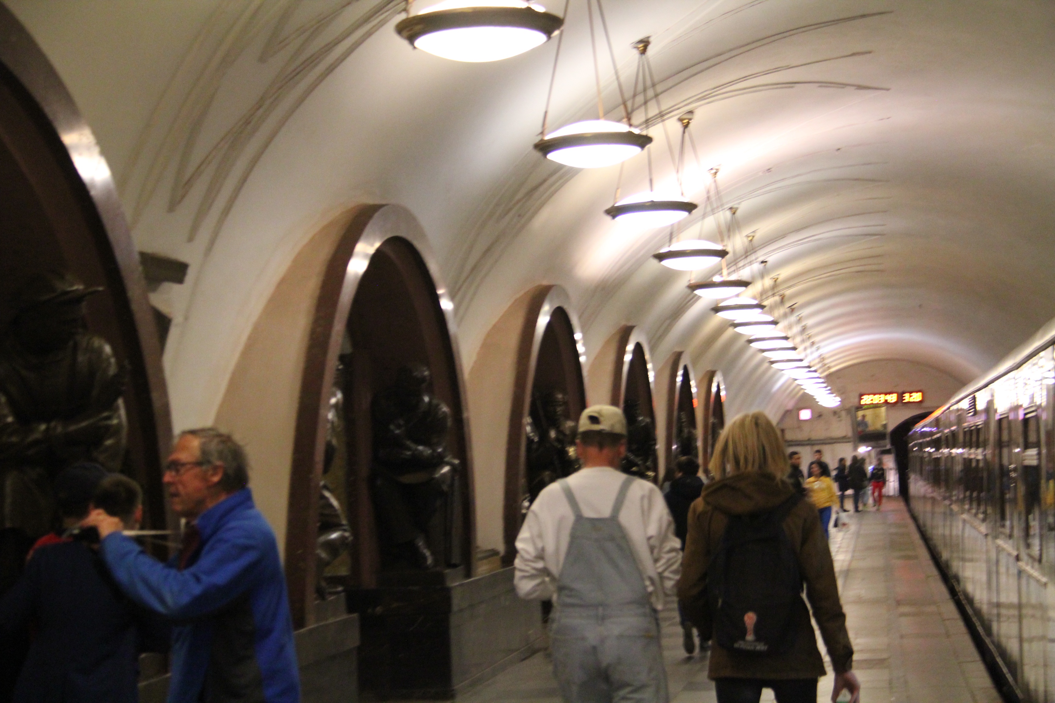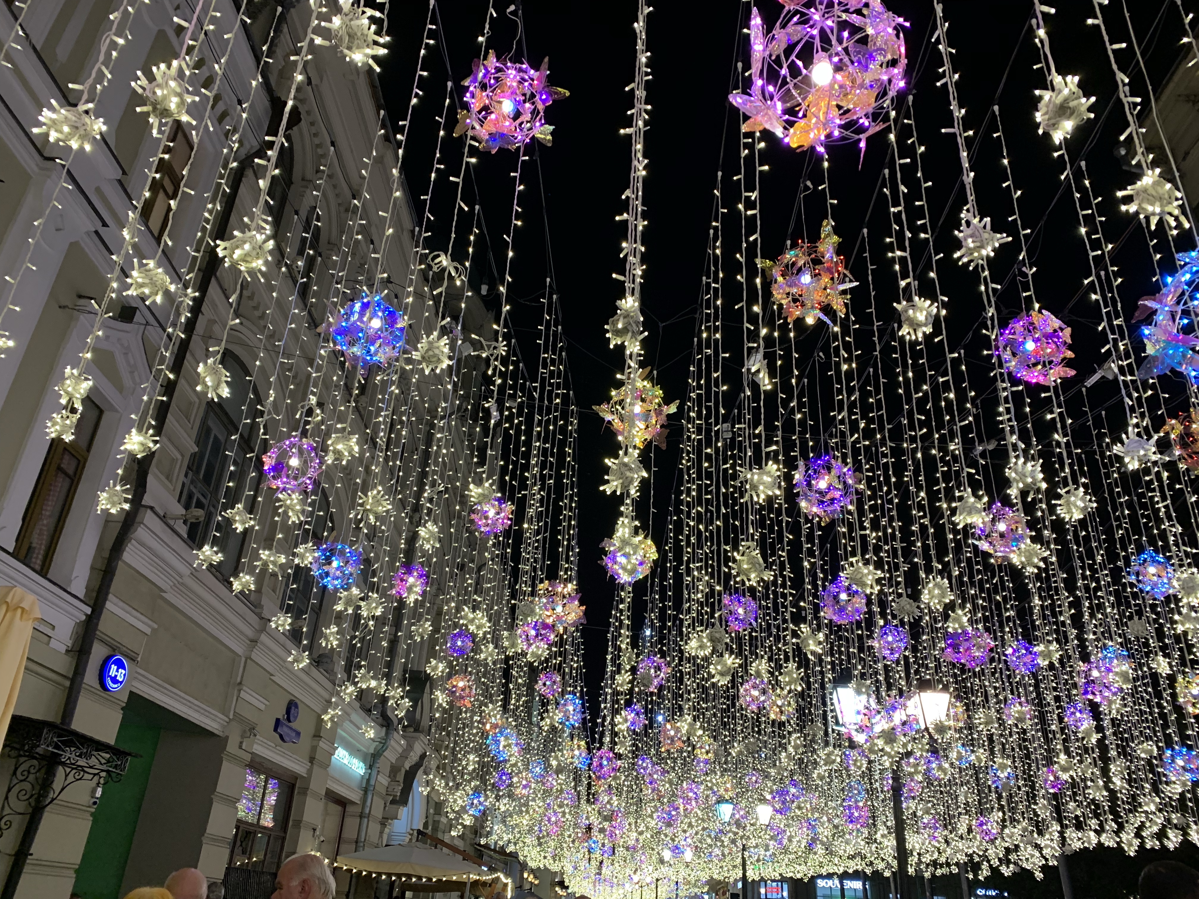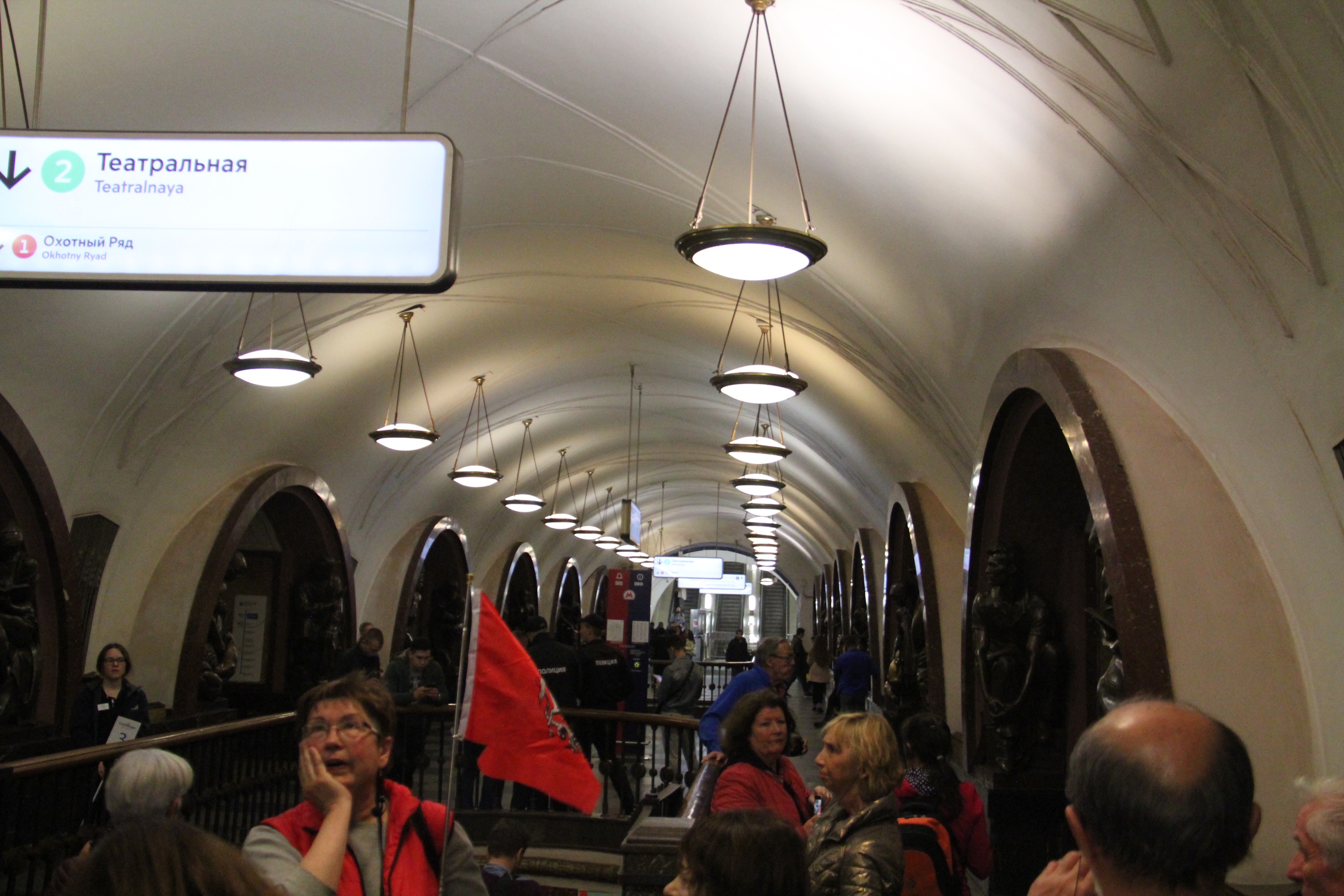 Après le dîner à bord nous partons à la découverte de « Moscou by night et de son célèbre métro, option que nous avions bien entendu réservée et n’avons pas regretté comme en témoigne la galerie de photos ci-dessous, en particulier la rue Nicolaskiaia, illuminée pour l‘ occasion, avait attiré tant de monde qu’il avait été décidé de garder à l’année l’illumination de cette voie qui débouche sur la Place Rouge et qui longe une aile du GUM.