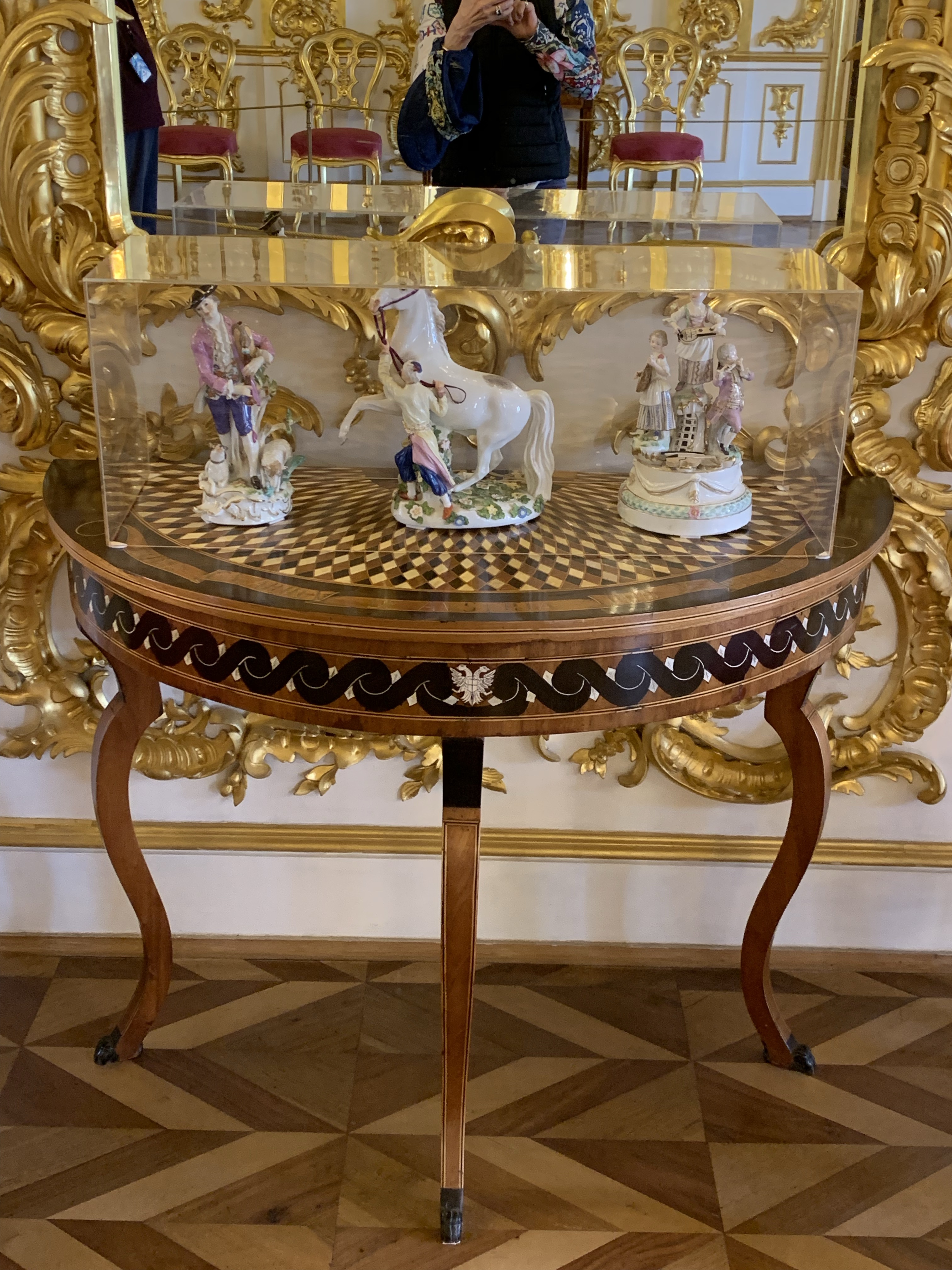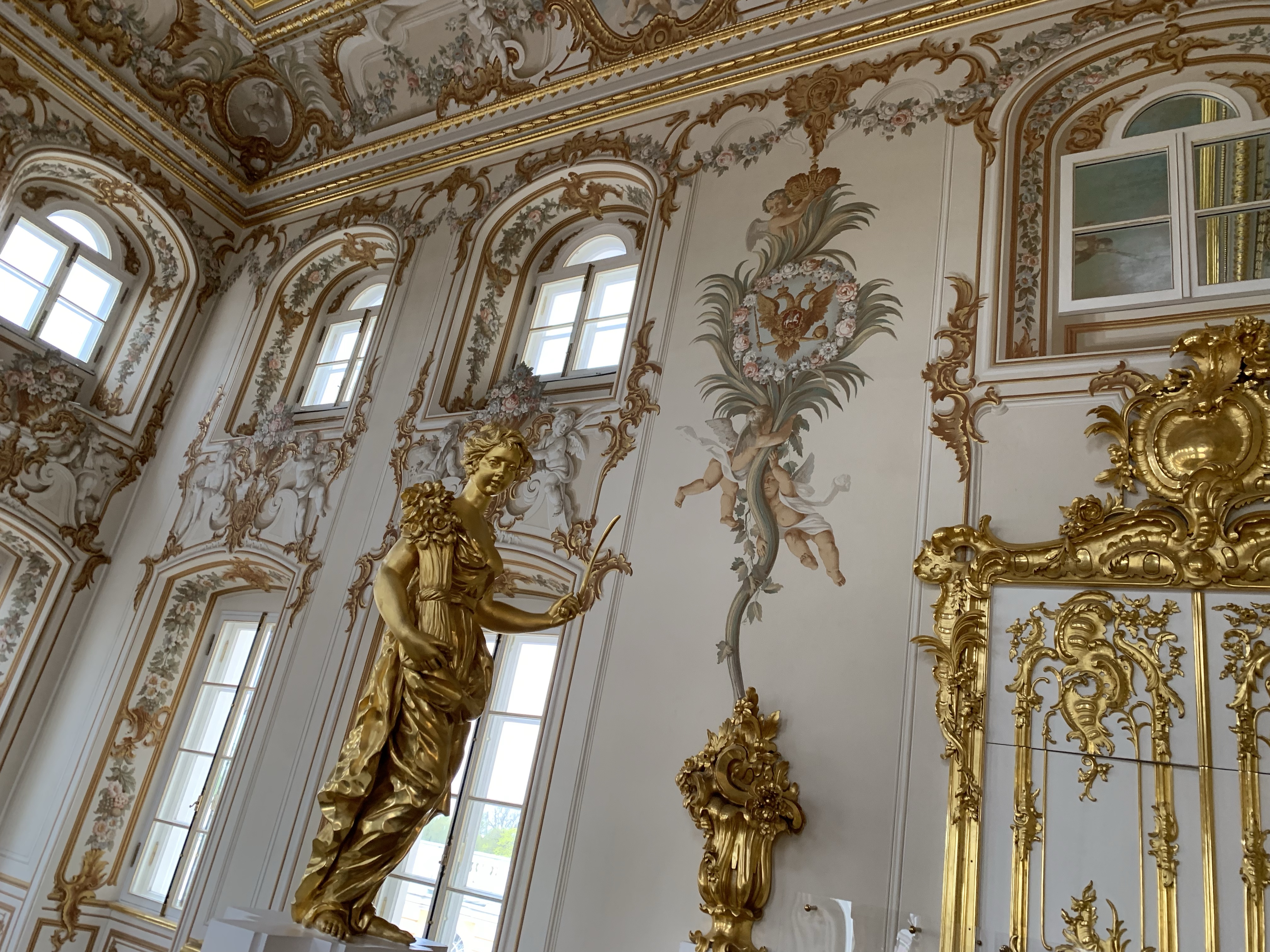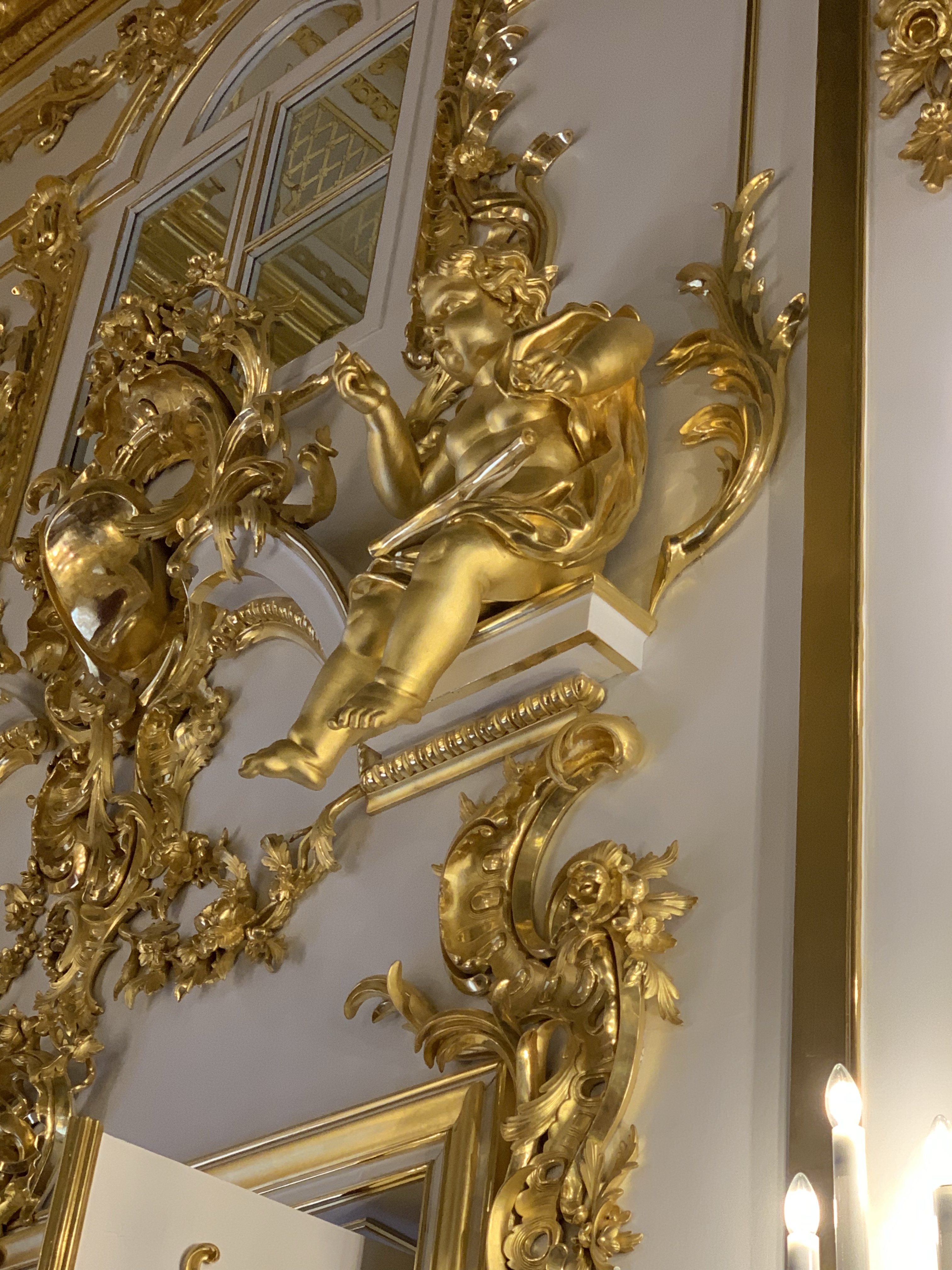 L’Ermitage passe pour le plus grand musée du monde concernant la quantité d’œuvres présentées, c’est dire qu’une grande matinée à elle seule ne suffit à en mesurer l’importance. Cependant, même traversées au pas de course (j’exagère un peu), les salles avec leurs plafonds en caissons ou peints sont splendides et laissent des souvenirs émerveillés devant tant de magnificence aussi bien par les tableaux que par les meubles. Il est vrai que c’est seulement depuis la fin du régime soviétique que les Russes et avec quel talent ! Se sont employés à rénover leurs bâtiments passablement délabrés paraît-il après la période communiste.