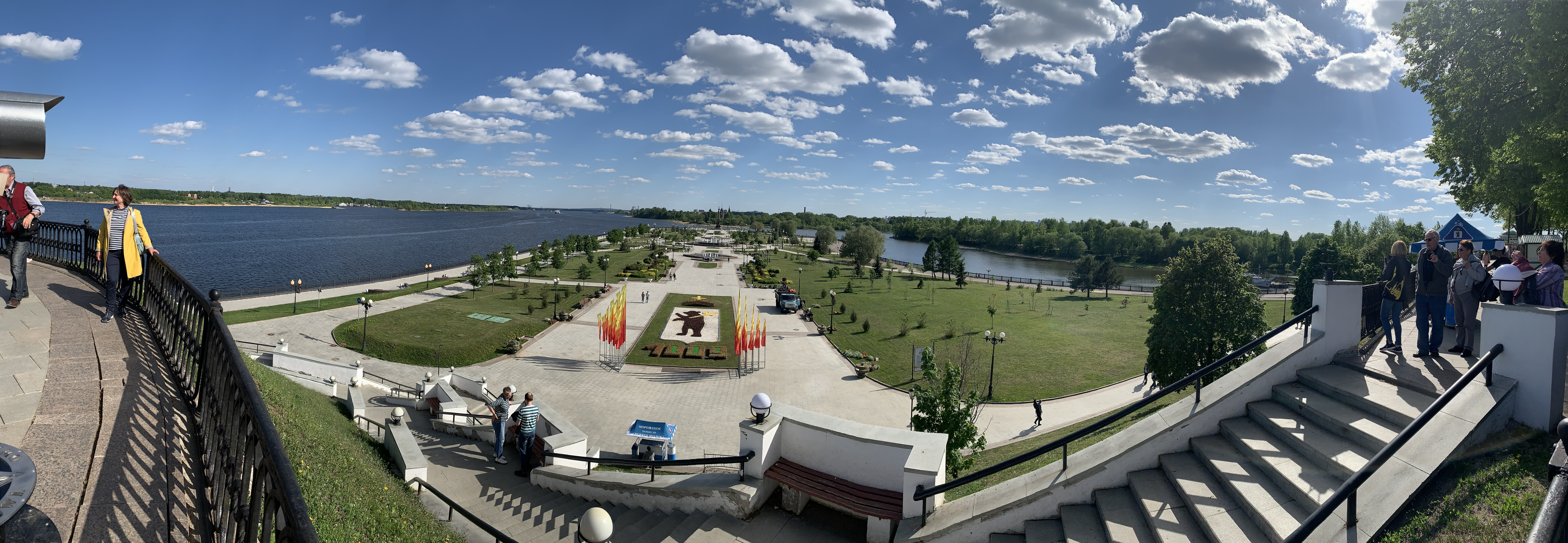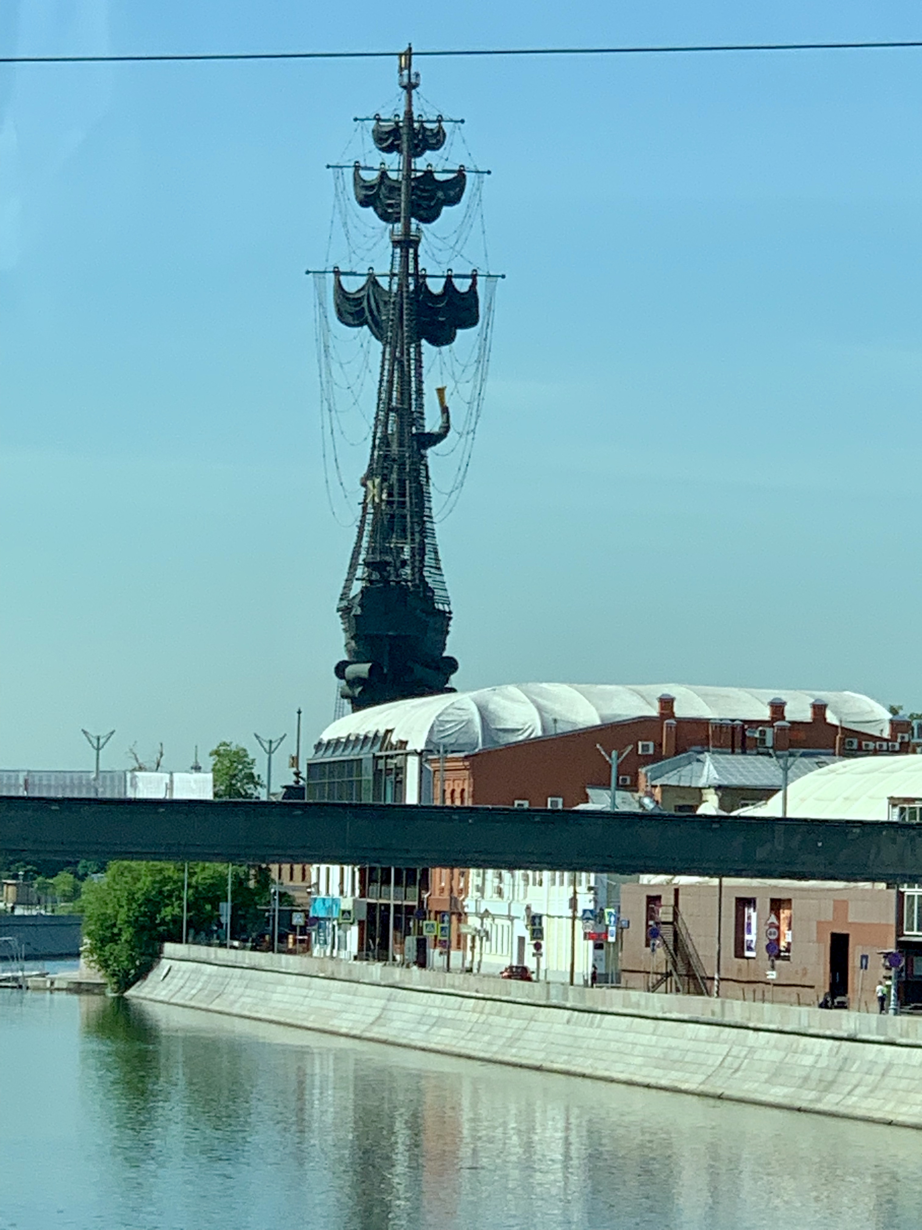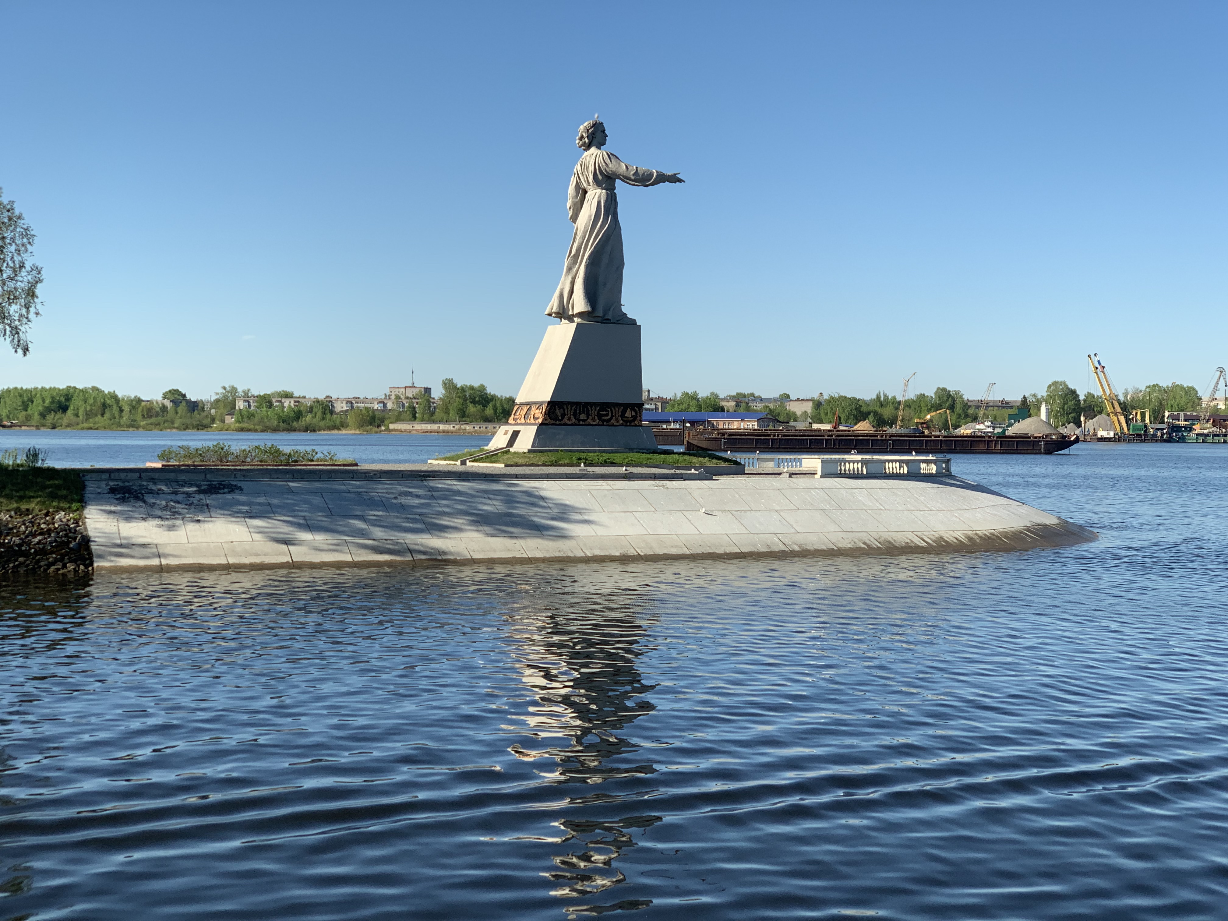 J’arrêterai assez vite de les compter, ces fameux clochers à bulbe, tant ils seront nombreux le long du parcours. A remarquer la statue qui est dite La Mère Russie, emblème national, et trône en plein milieu du fleuve.