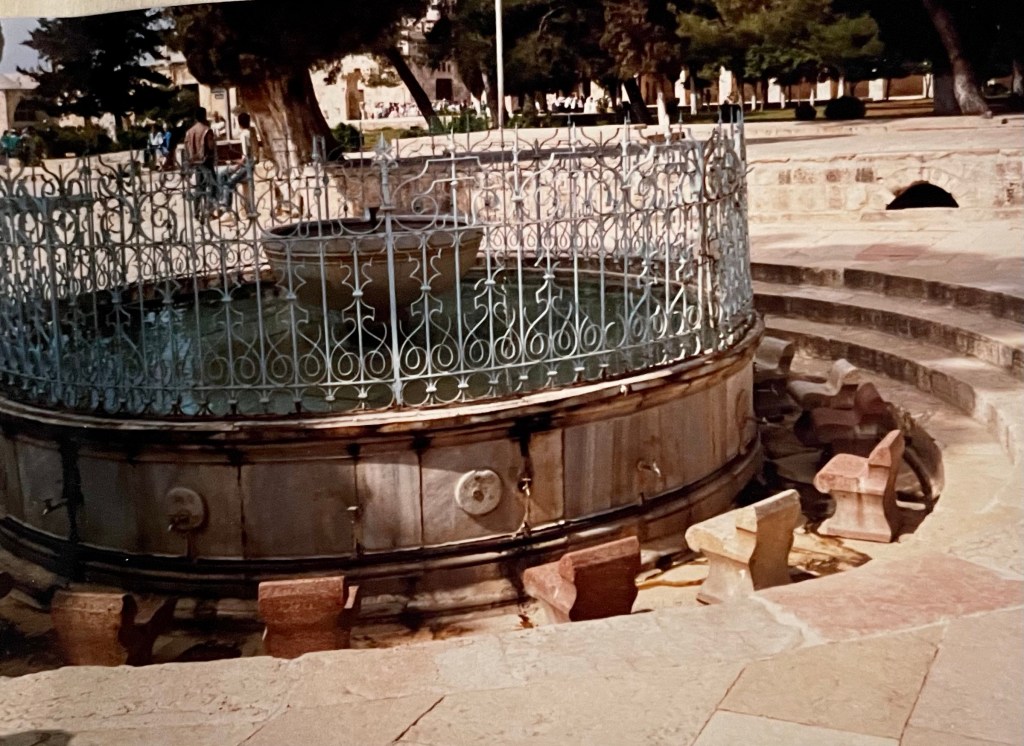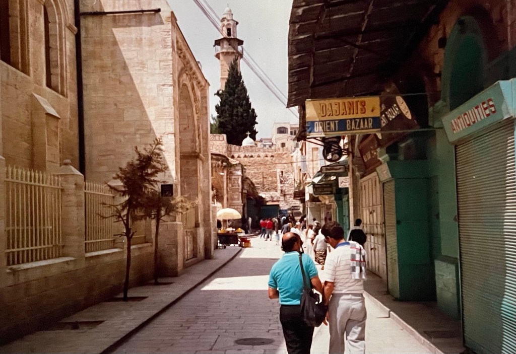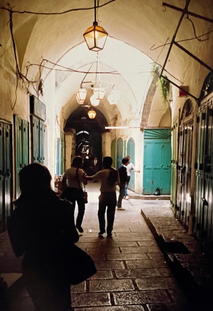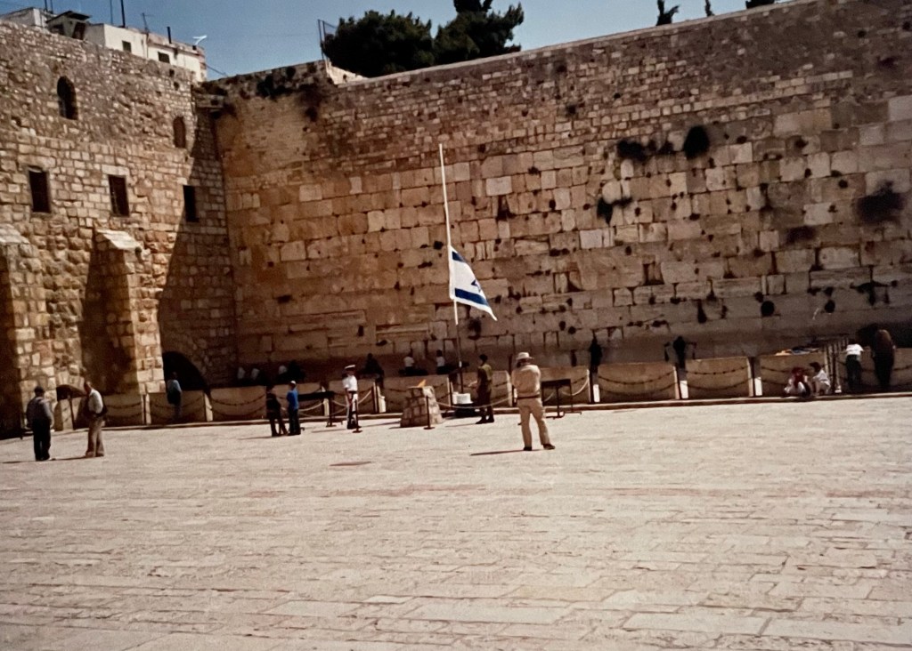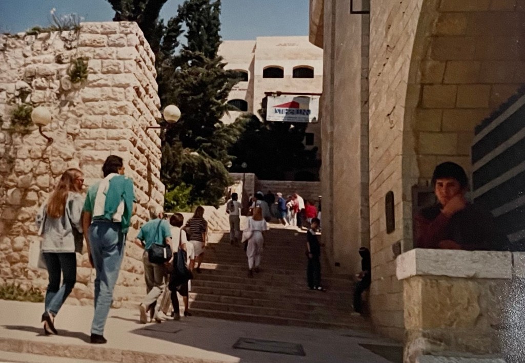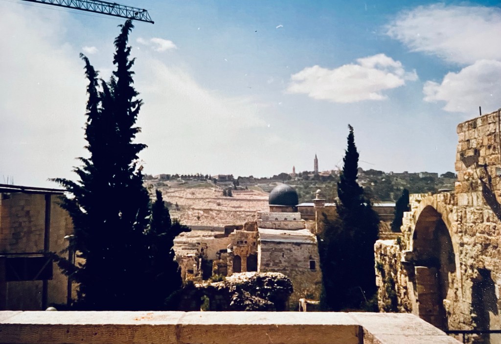 Nous sommes arrivés dans un lieu qui n’était pas aussi serein que nous l’imaginions sur la colline le dominant. C’était en effet le quarantième anniversaire de la naissance d’Israël et les touristes n’étaient pas spécialement bien accueillis. Néanmoins nous avons évité les jets de cailloux qui étaient monnaie courante ces jours-là.