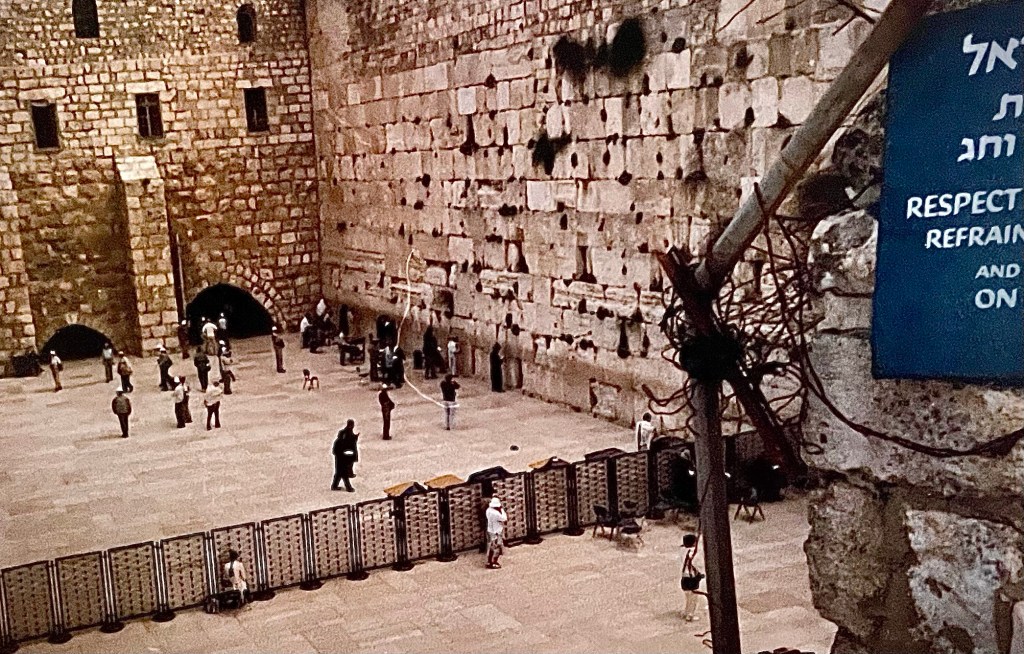 Appelé ainsi par les Chrétiens, le Mur est devenu un lieu saint pour les Juifs qui, quotidiennement, viennent y prier en insérant dans les fentes des différentes pierres des vœux sous forme de petits papiers pliés.