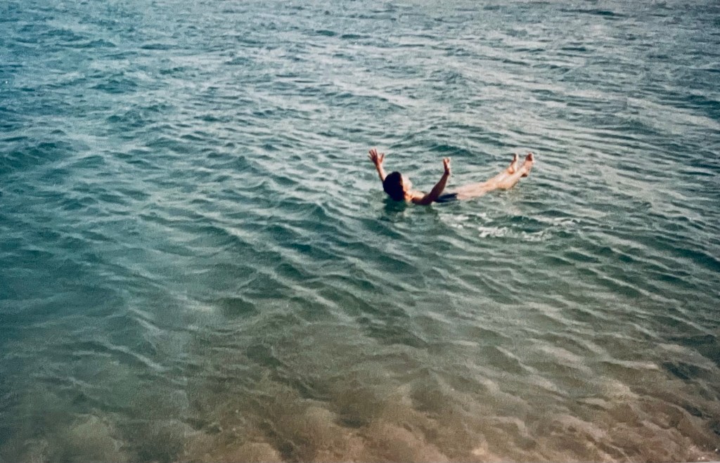 Elle est encore plus turquoise que ne le montrent les photos et cette teinte est due sans doute à sa teneur en sel (4 à 5 fois celle des océans). Mais si la baignade est agréable (gare aux brûlures des yeux), la natation y est impossible… on ne peut que flotter.
