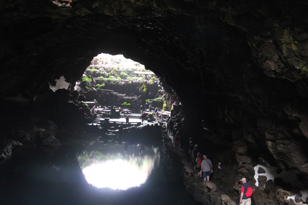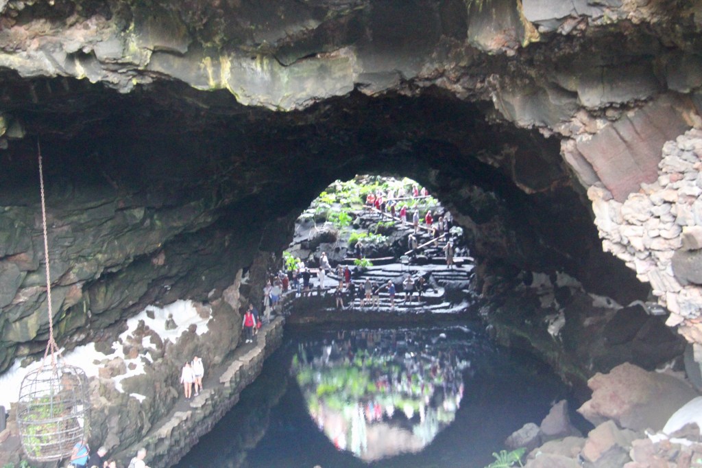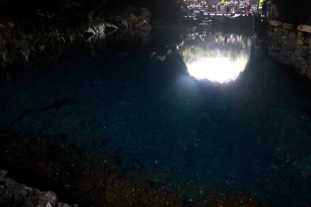 Une passerelle permet de traverser ce lac souterrain et de contempler les minuscules crustacés aveugles et endémiques (Munidopsis polymorpha). La sortie du Jameo Grande s’effectue par une succession de terrasses en pierre volcanique.