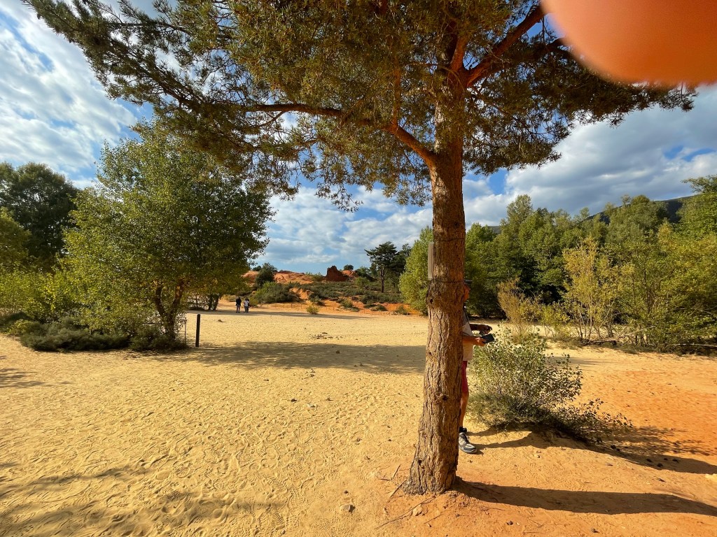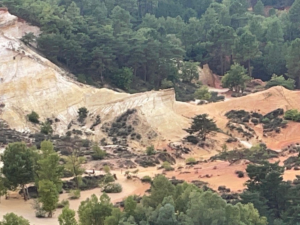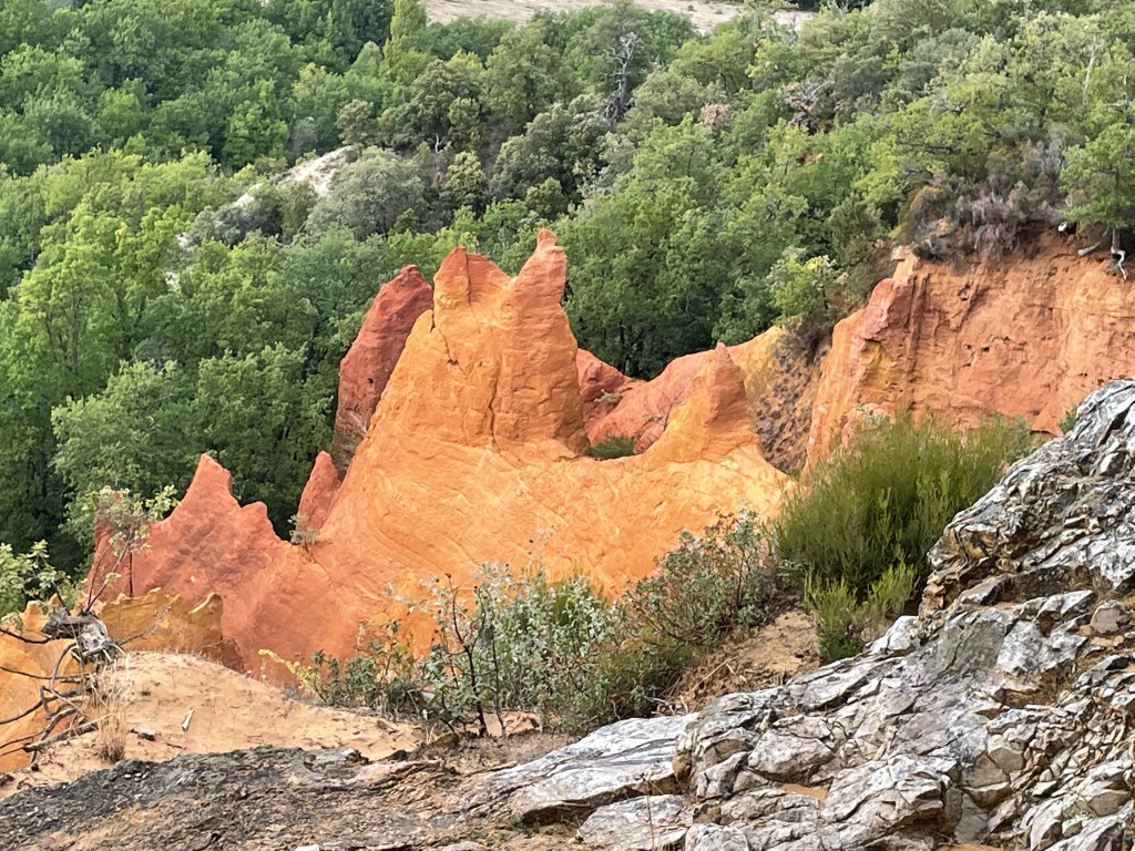 D’ailleurs nous nous sommes amusés avec Jean-Louis à envoyer les clichés à notre fils et à nos petits enfants en signalant que nous étions partis (re)découvrir le Colorado sans tambour ni trompette. Comme nous avions découvert ces mêmes grands Espaces américains à la fin du siècle dernier, j’ai pu constater que l’illusion est totale et en tout cas à l’échelle humaine. Ils se sont montrés sidérés de voir qu’un tel lieu existait en Provence alors qu’ils avaient fait des milliers de km pour voir les Grands Parcs américains.