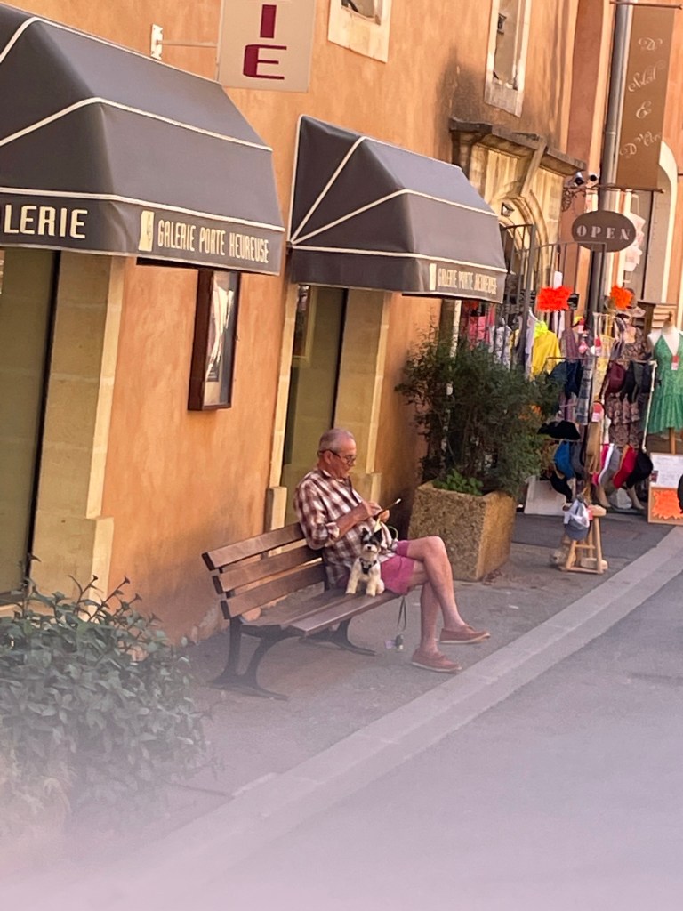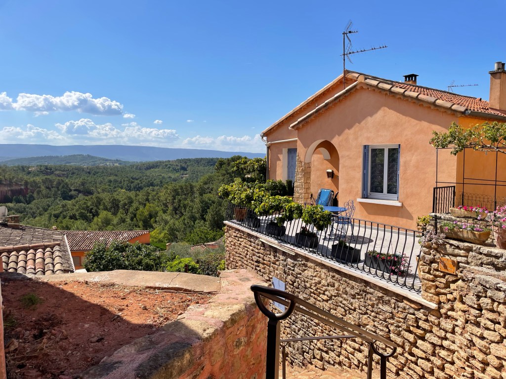 Après donc avoir arpenté le Colorado de Rustrel et ses espaces aux contrastes saisissants, du jaune le plus lumineux au rouge le plus profond, façonnés par six générations d’ocriers et de mineurs de fer, recommandé en cela par notre sympathique aubergiste nous sommes partis en direction de Roussillon en faisant un léger détour par St Saturnin-sur Apt que malheureusement nous n’avons fait que traverser pour aller admirer le point de vue sur la vallée.