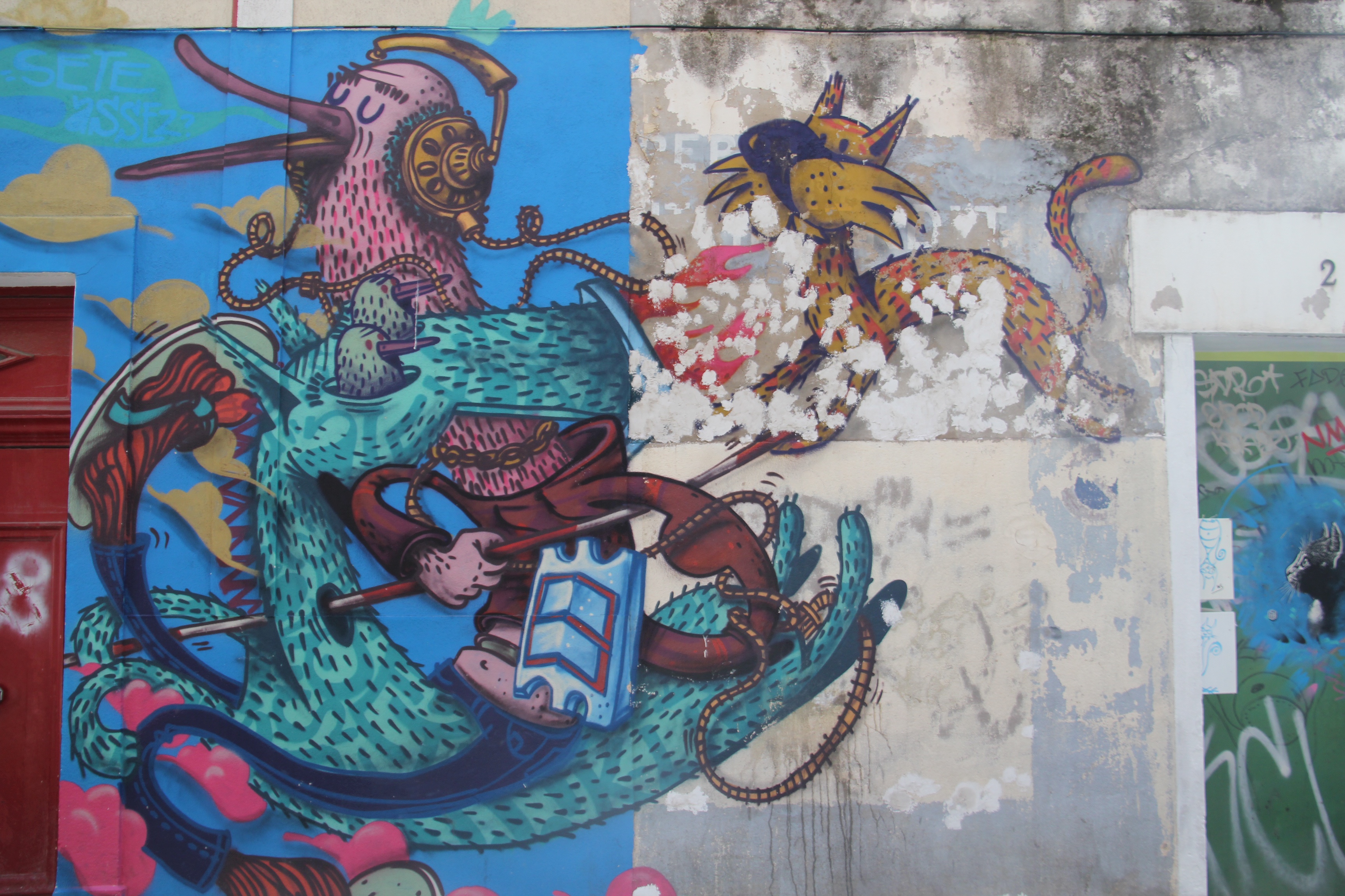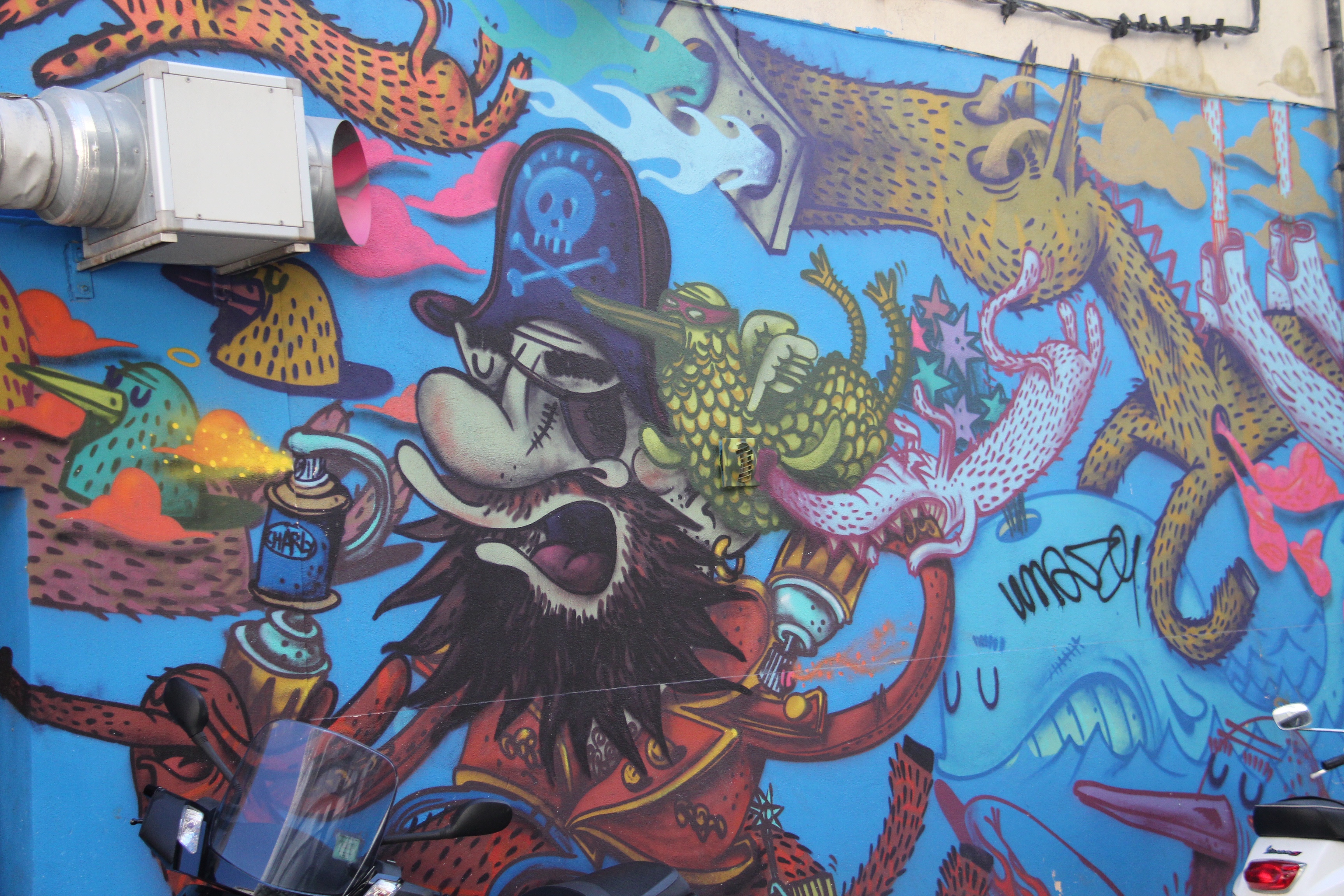 L’un de ces festivals commence très tôt dans la saison estivale car tous les ans il est alimenté par des graffeurs souvent de renommée nationale et les habitants se pressent pour obtenir de leur part qu’ils honorent les murs de leurs biens. Ce festival de Pop Art m’a donné l’occasion au cours d’un parcours organisé par l’office du Tourisme de faire un certain nombre de photos.